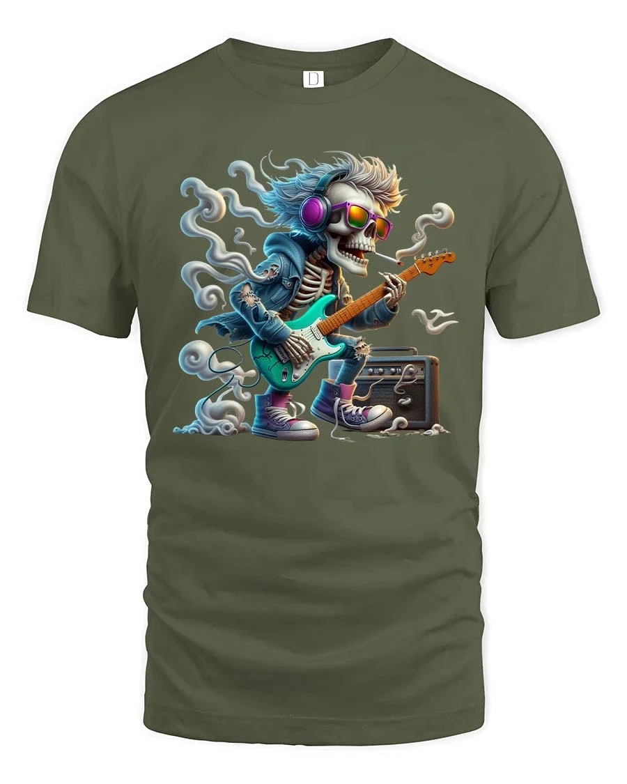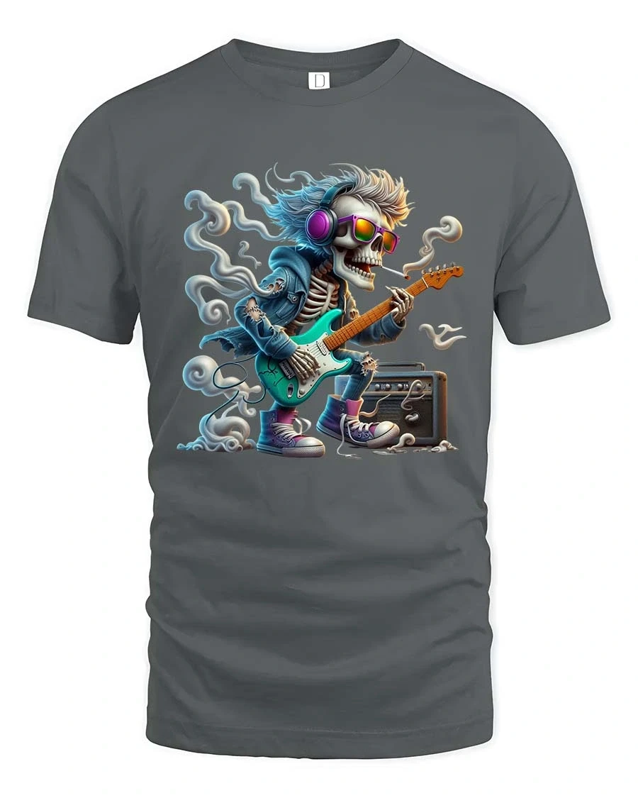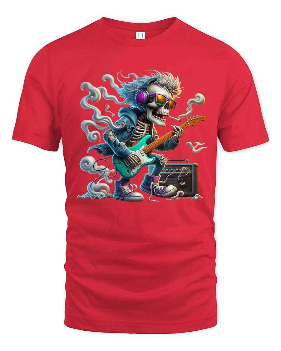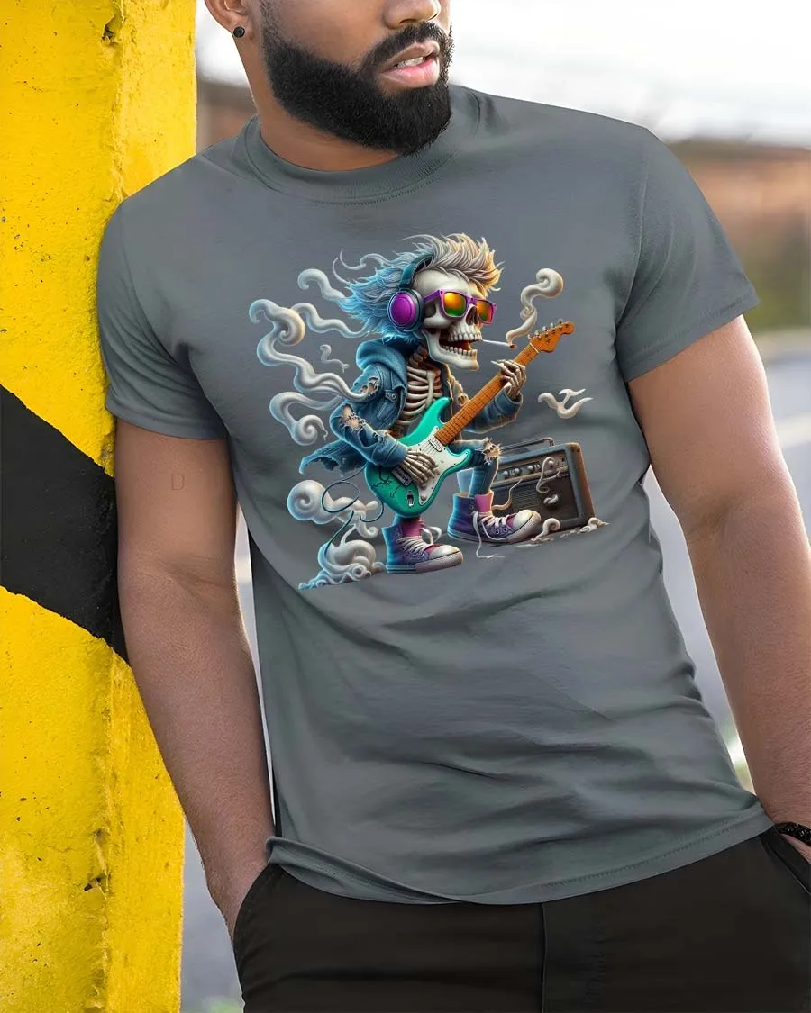 Made with soft breathable fabric, this tee offers lasting comfort while keeping the graphic sharp and vibrant. The high quality print preserves every detail from the guitar strings to the expressive skeleton pose, giving you a standout piece that reflects passion and creativity. The Rocking Skeleton Guitarist Graphic T Shirt is perfect for anyone who lives for music, rhythm, and bold self expression.