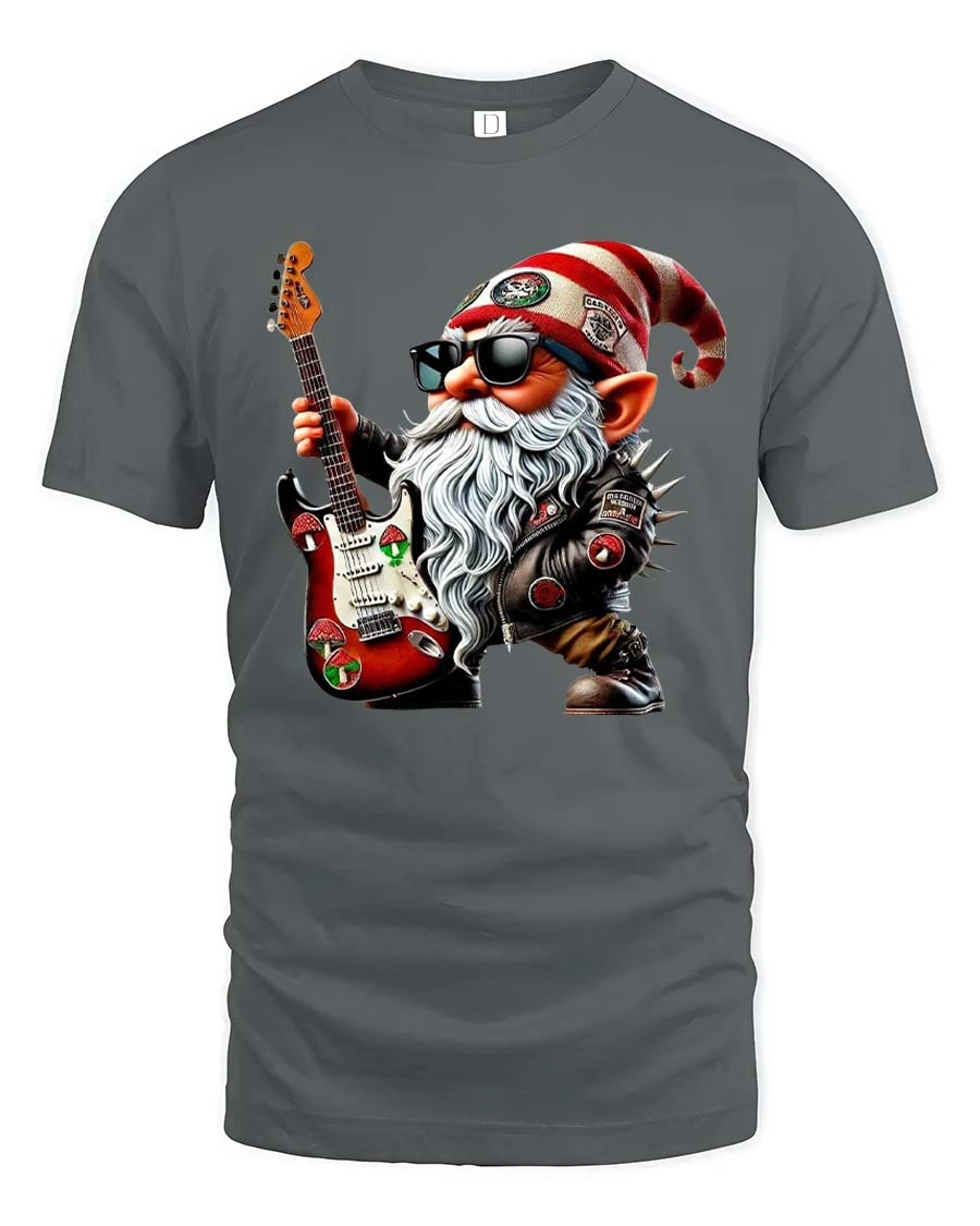 Home Hobbies Rockstar Gnome Electric Guitar Cartoon Graphic T Shirt Cool Style