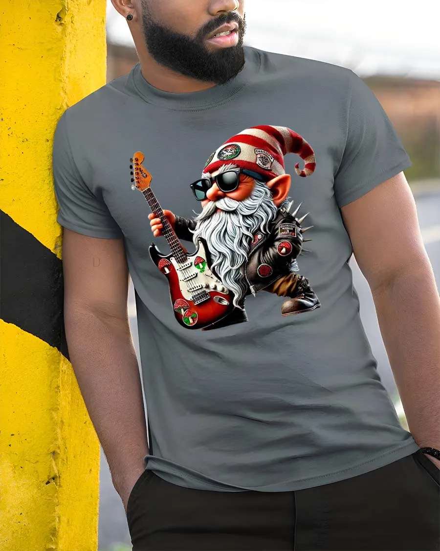 Rockstar Gnome Electric Guitar Cartoon Graphic T Shirt Cool Style