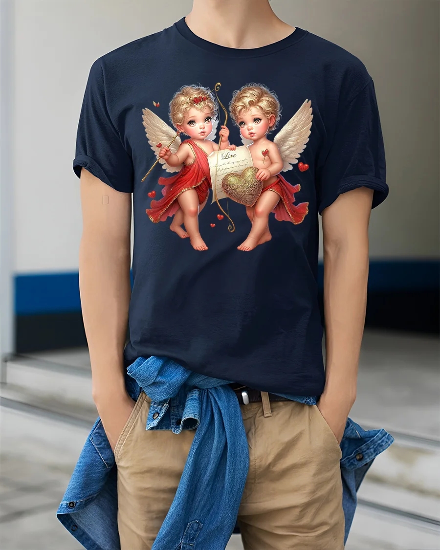 Wearing the Romantic Cupid Twins Love Heart Vintage Angel Art Tee brings a blend of nostalgia and elegance to any outfit. The detailed artwork gives the shirt a premium look, making it a thoughtful choice for gifting or personal wear. Its soft, enchanting visuals make it perfect for expressing affection, celebrating special moments, or simply enjoying a lovable and artistic design.