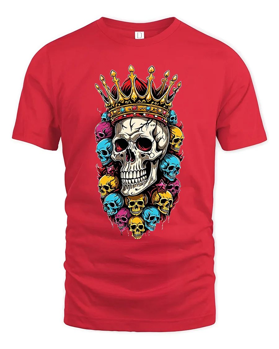 Royal Crown Skull Art Tee With Bold Colorful Rebel Style - red t-shirt on white background