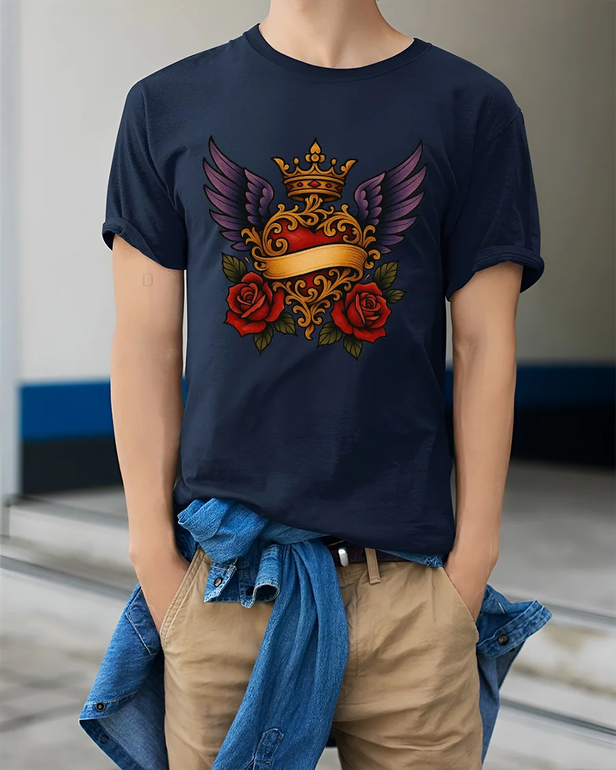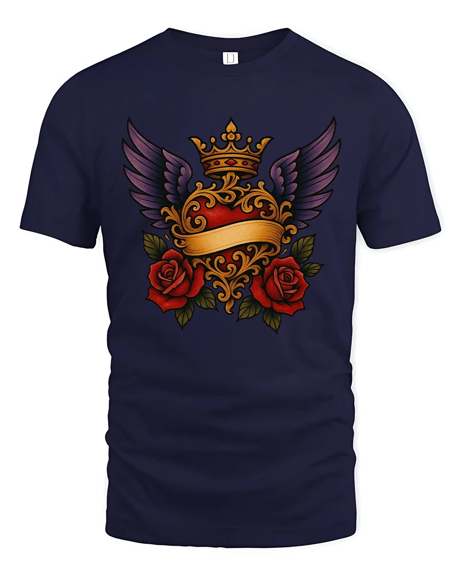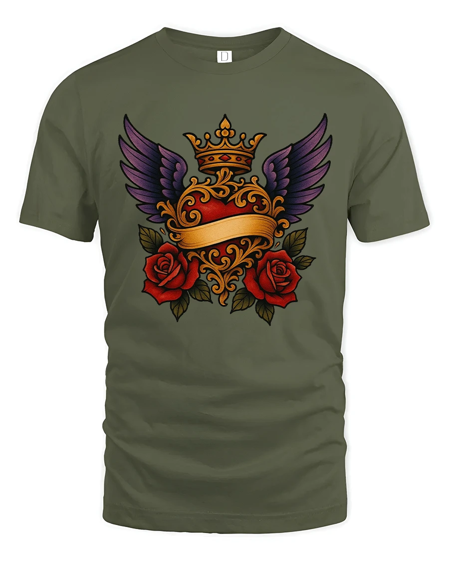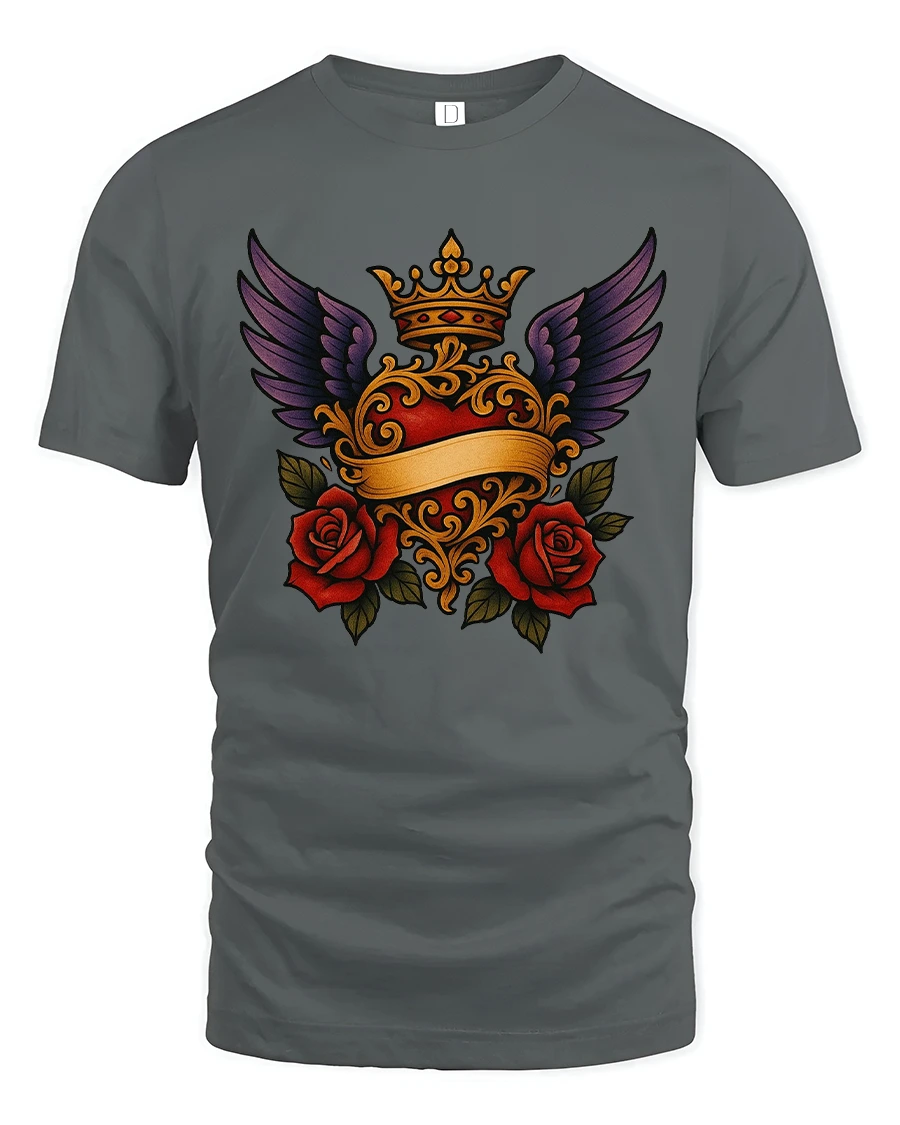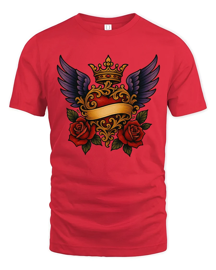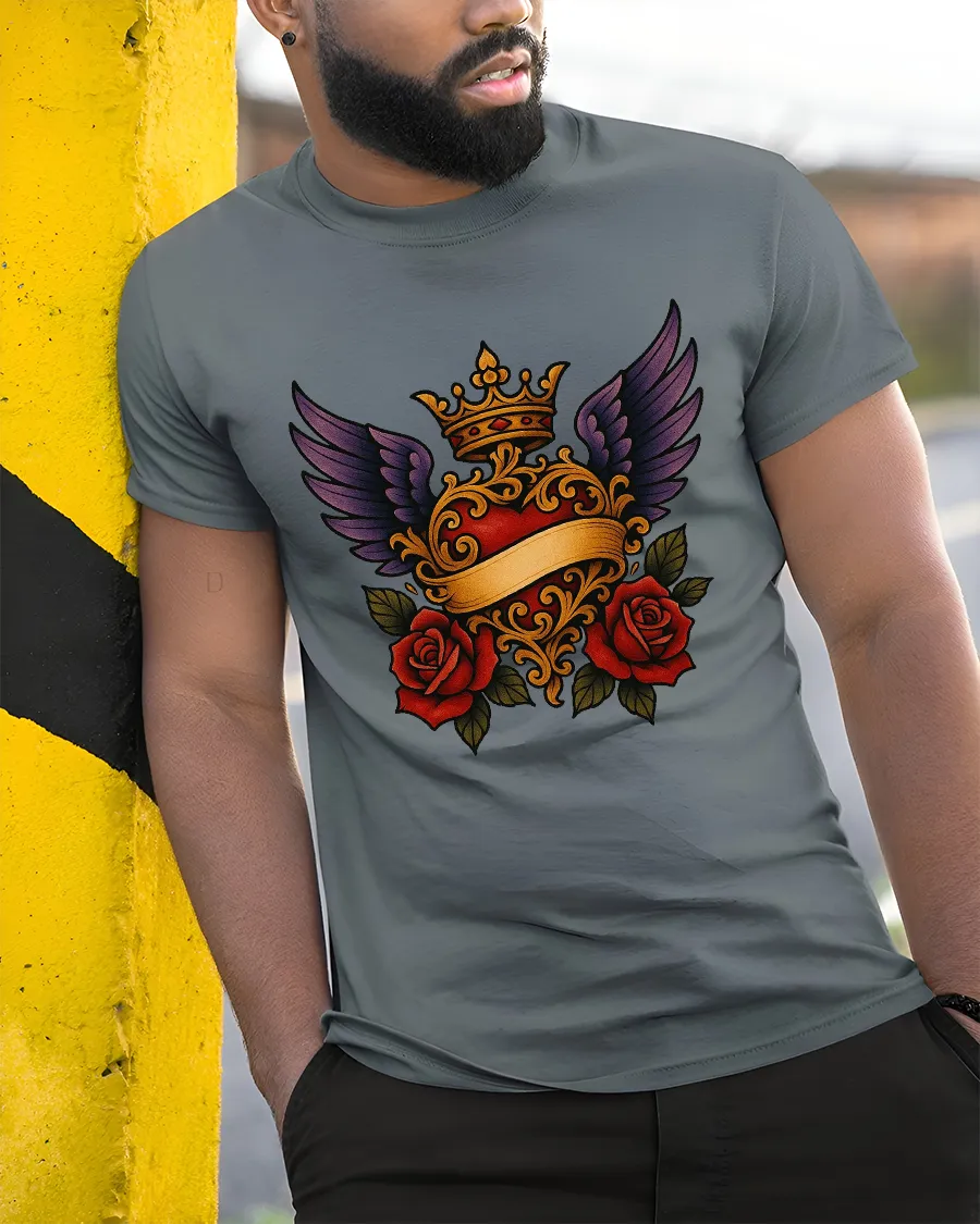 Royal Winged Heart Rose Art Tee Elegant Gothic Symbol Style delivers a rich and expressive design inspired by classic symbolism and timeless romance.