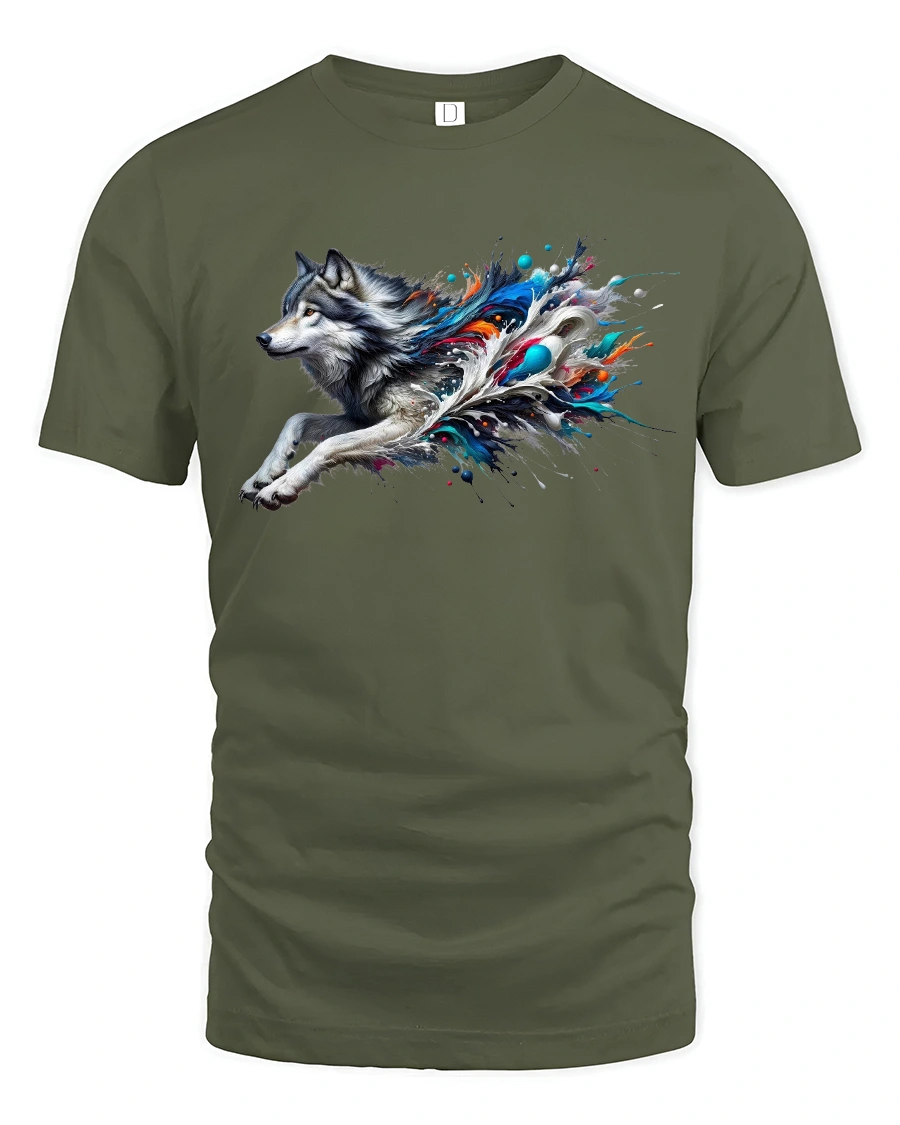 Show your wild side with the Running Wolf T-Shirt – Color Splash Wild Spirit Tee.