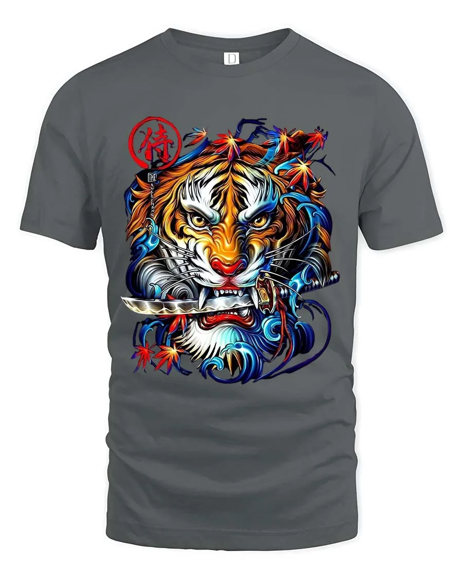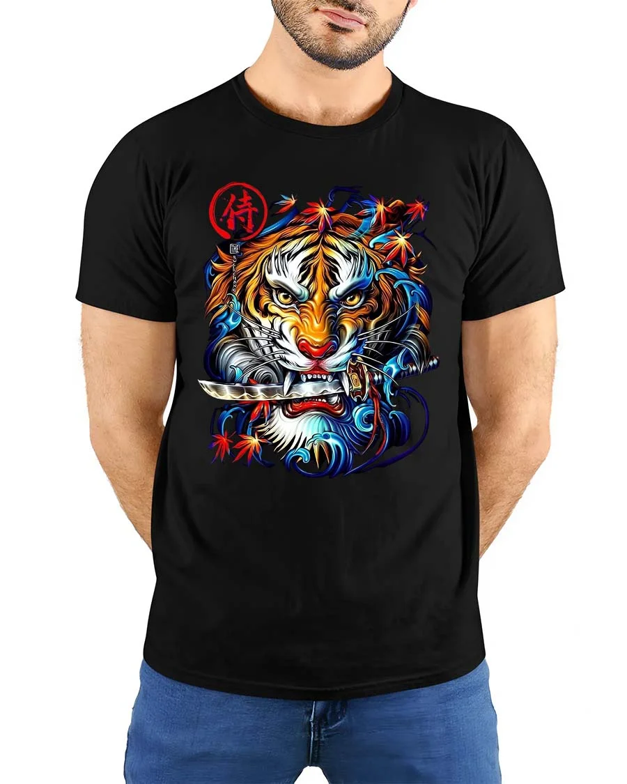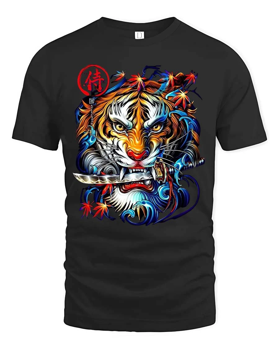 The samurai tiger design represents strength focus and fearless attitude making it a standout addition to any wardrobe.