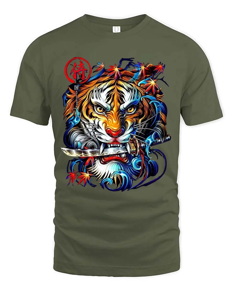 Samurai Tiger Graphic T Shirt Japanese Warrior Street Art Style combines strength tradition and bold artistic detail in one striking design.