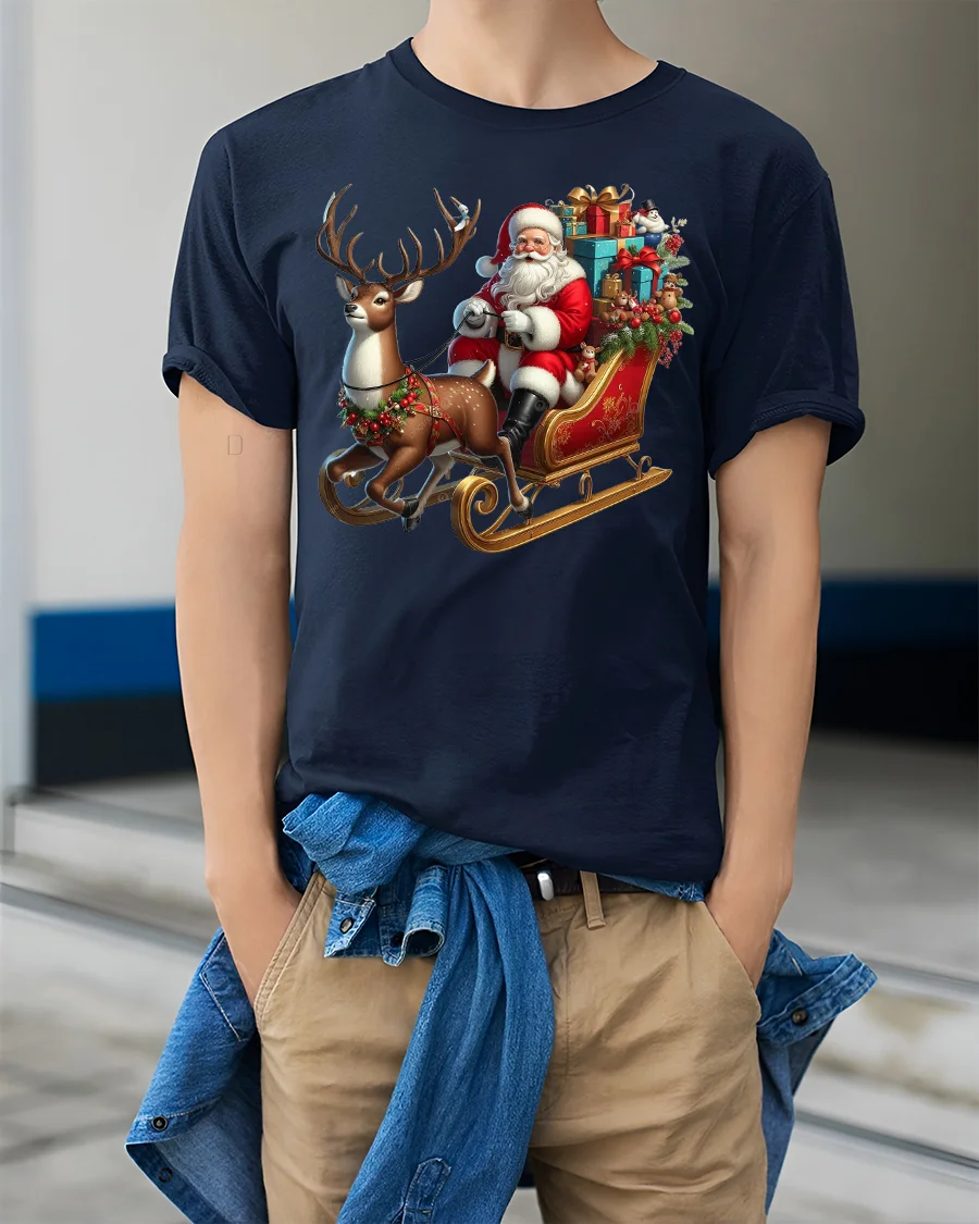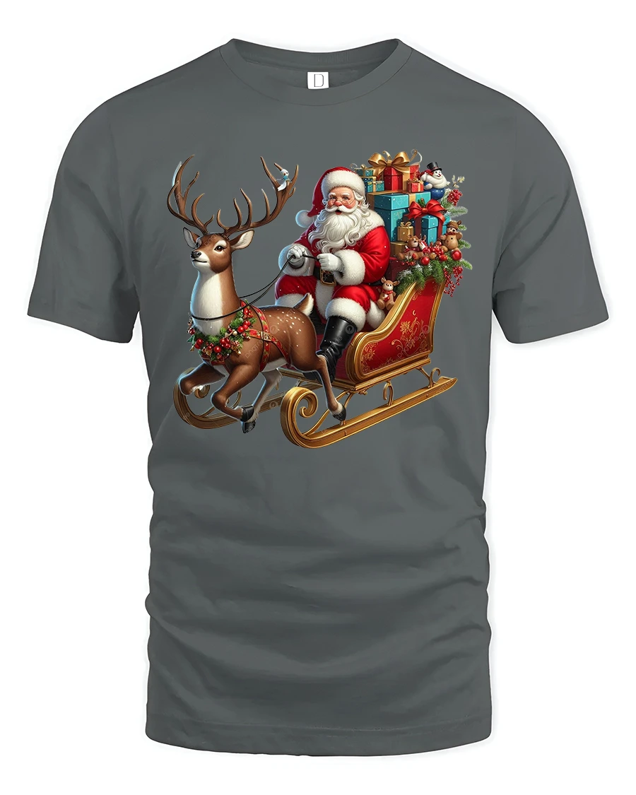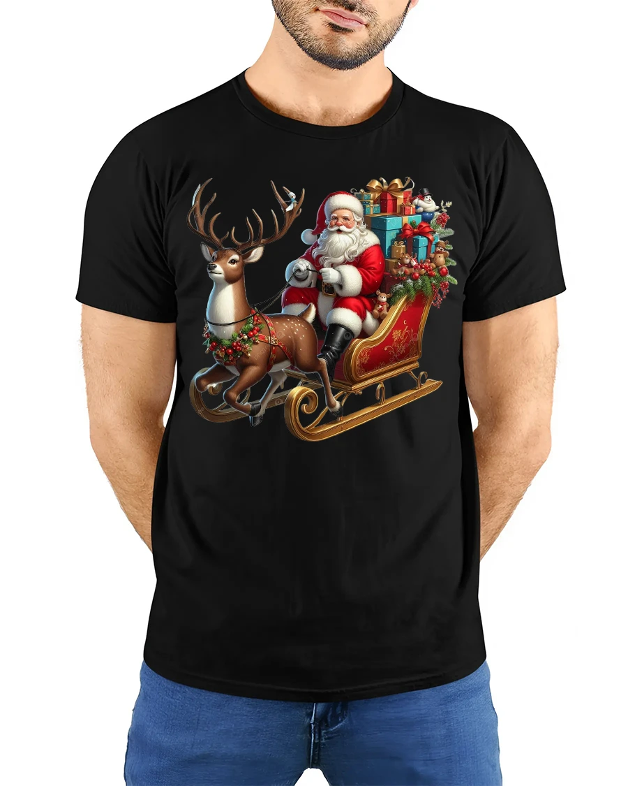 Crafted from soft, comfortable fabric, this t-shirt is ideal for family gatherings, Christmas parties, winter festivals, or simply enjoying the cozy holiday spirit. The high-quality graphic print ensures vibrant color and lasting detail, even after many washes. Both adults and kids will love the nostalgic feel of Santa’s sleigh ride, making it a wonderful addition to any holiday wardrobe.