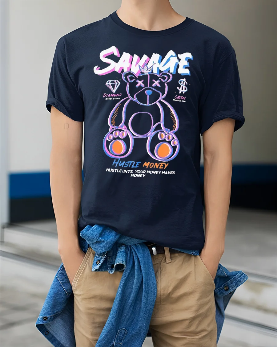 Step into bold style with the Savage Hustle Money Bear Graphic Tee Streetwear, a perfect blend of humor, hustle, and urban vibes. Featuring a neon bear design with “Savage” lettering and motivational money-themed graphics, this tee is made for anyone who’s all about the grind and living life unapologetically.