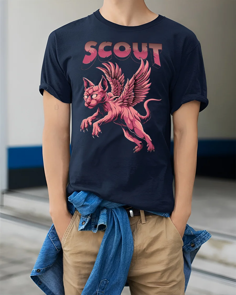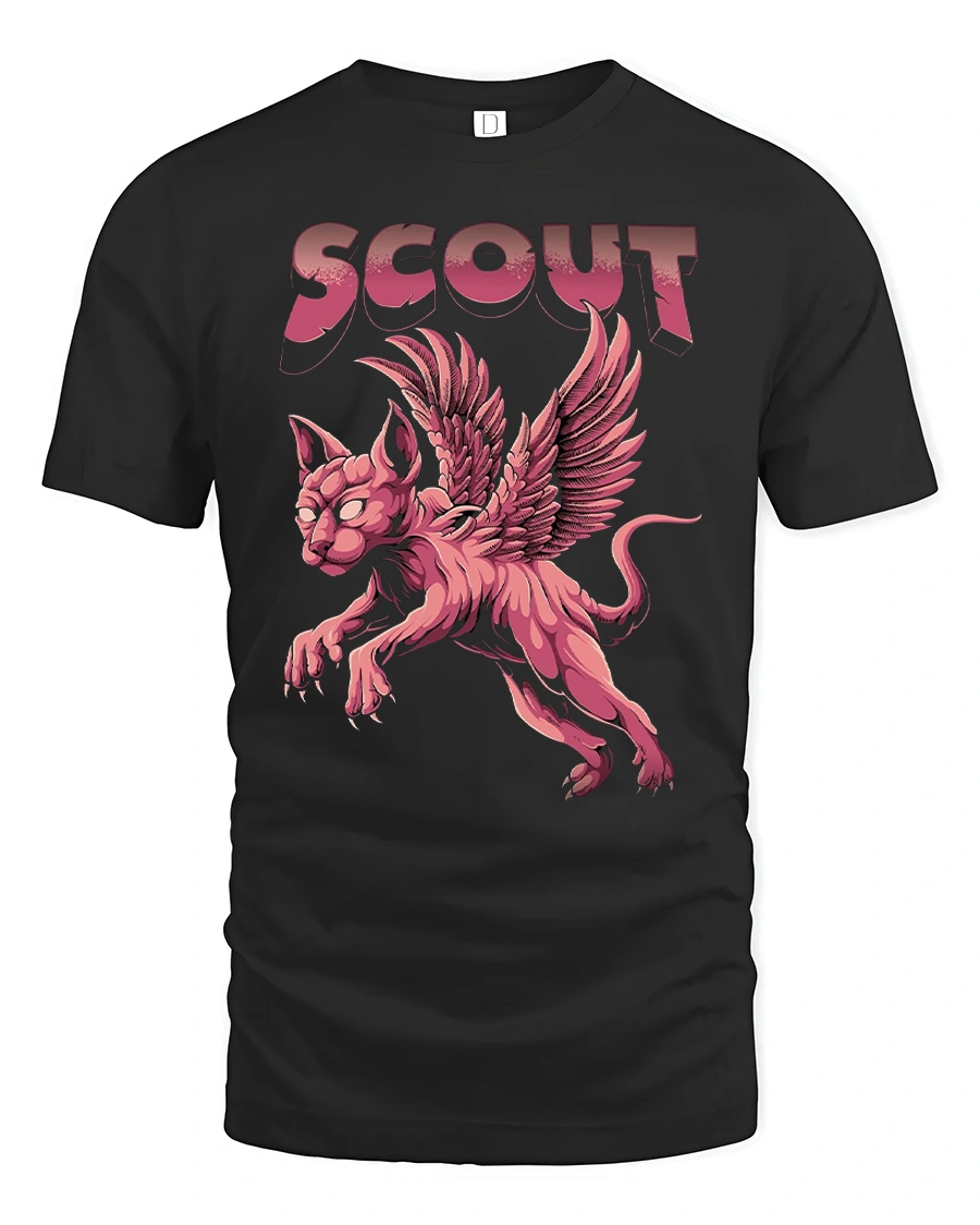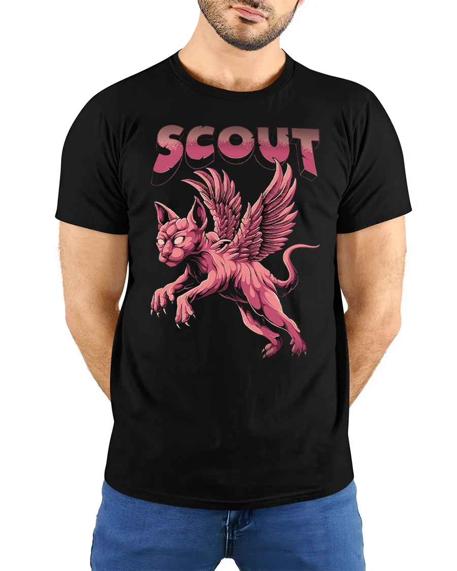 Perfect as a gift for cat lovers, fantasy fans, and gothic streetwear enthusiasts, this winged cat printed tee adds a creative edge to any wardrobe. If you want something unique, bold, and eye-catching, the Scout winged cat t-shirt is a must-have.