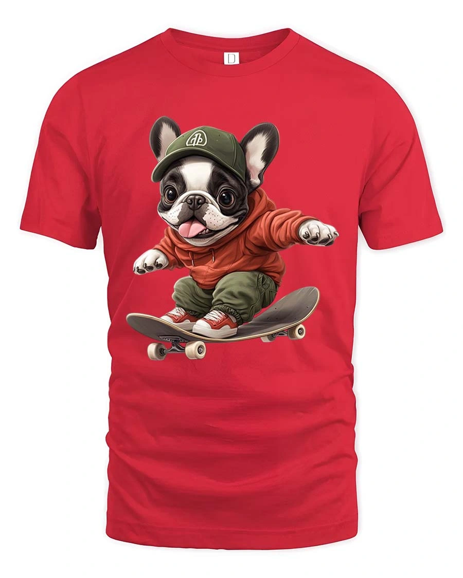 Skateboarding French Bulldog T-Shirt Cute Street Style Tee - red t-shirt on white background