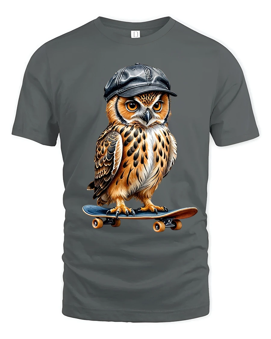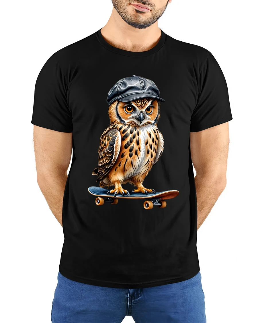 Home Animals Lover Skateboarding Owl Tee with Cool Cap and Street Style Art