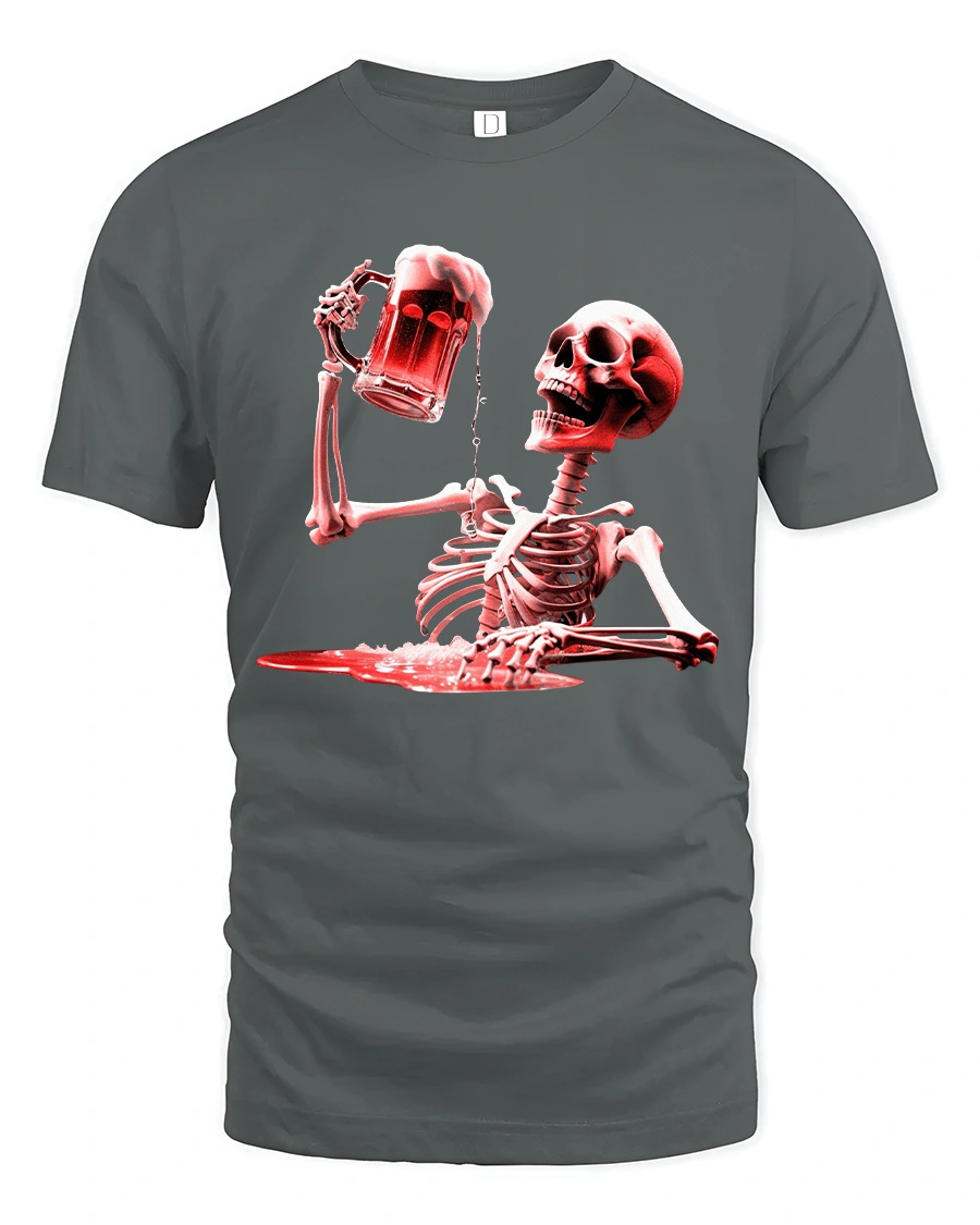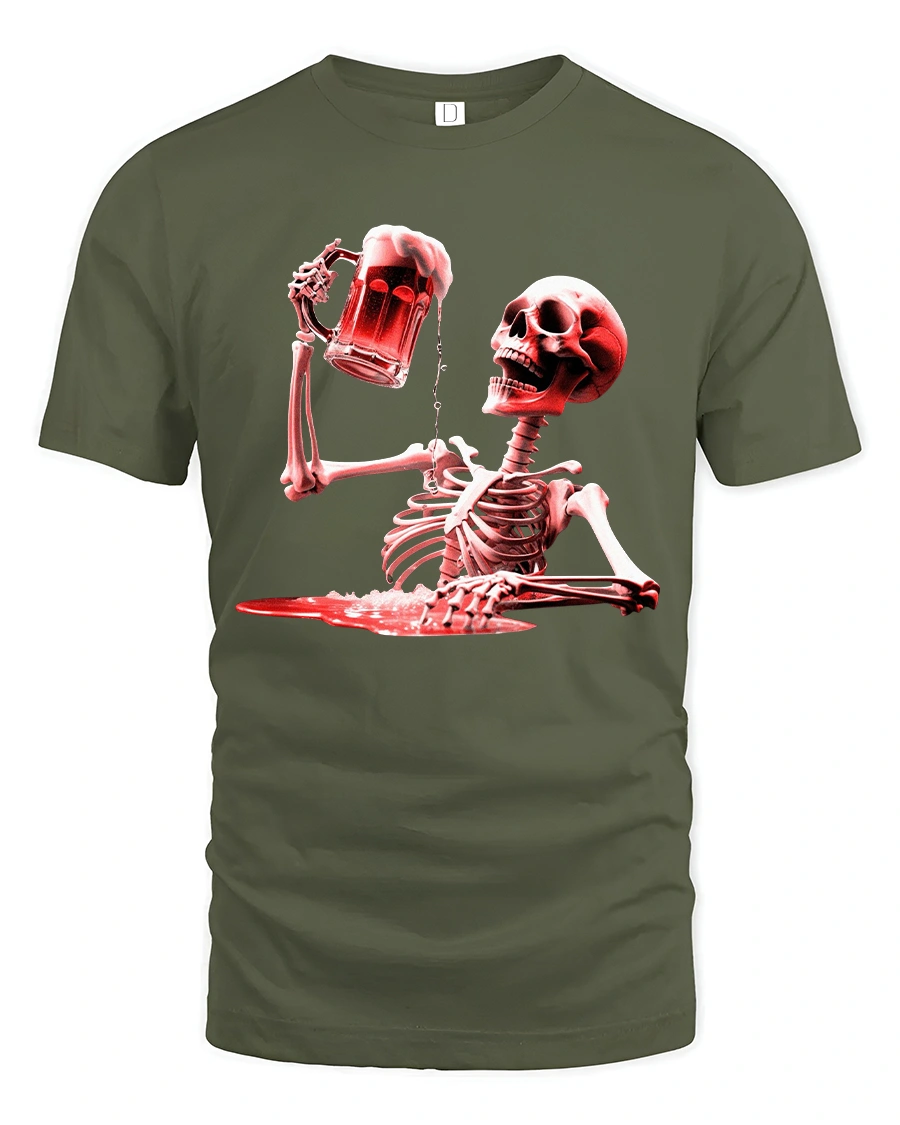 The Skeleton Beer Toast Dark Humor Party Graphic Tshirt blends bold attitude with playful dark comedy artwork.