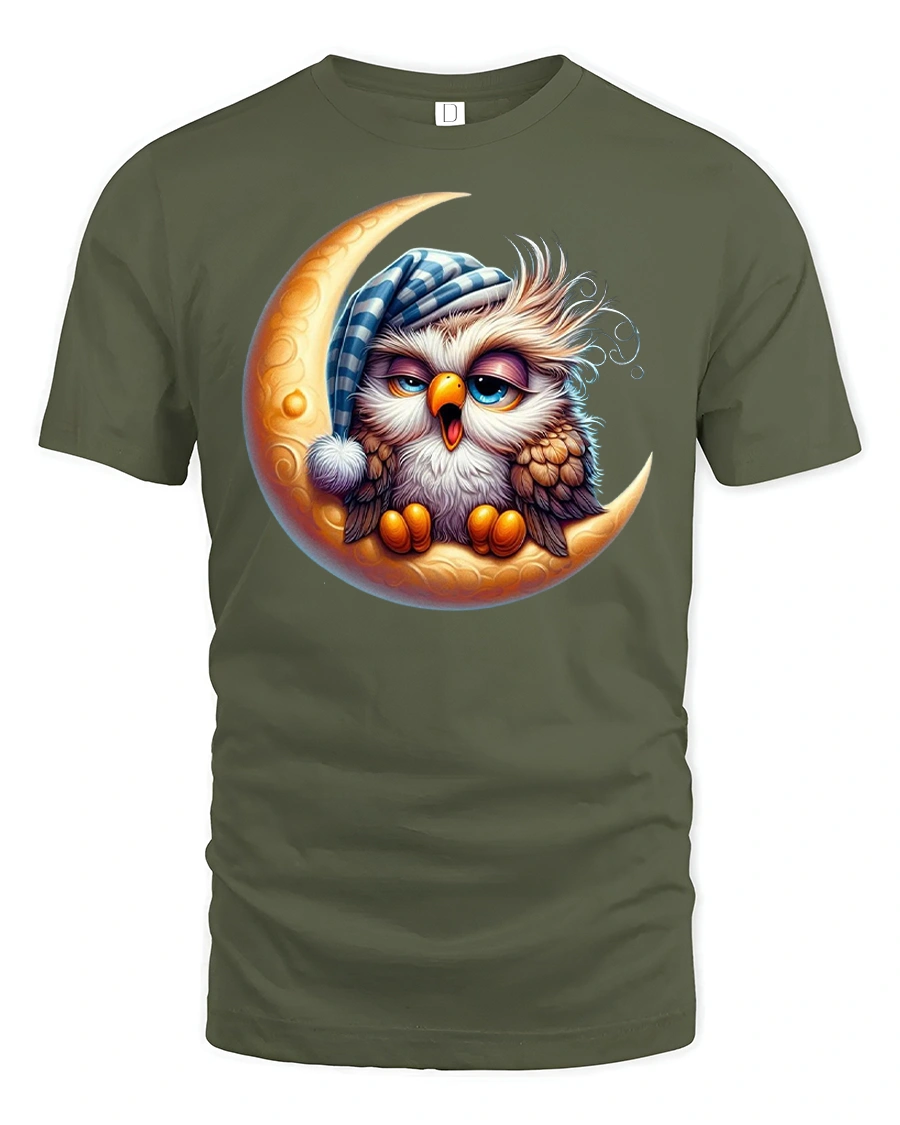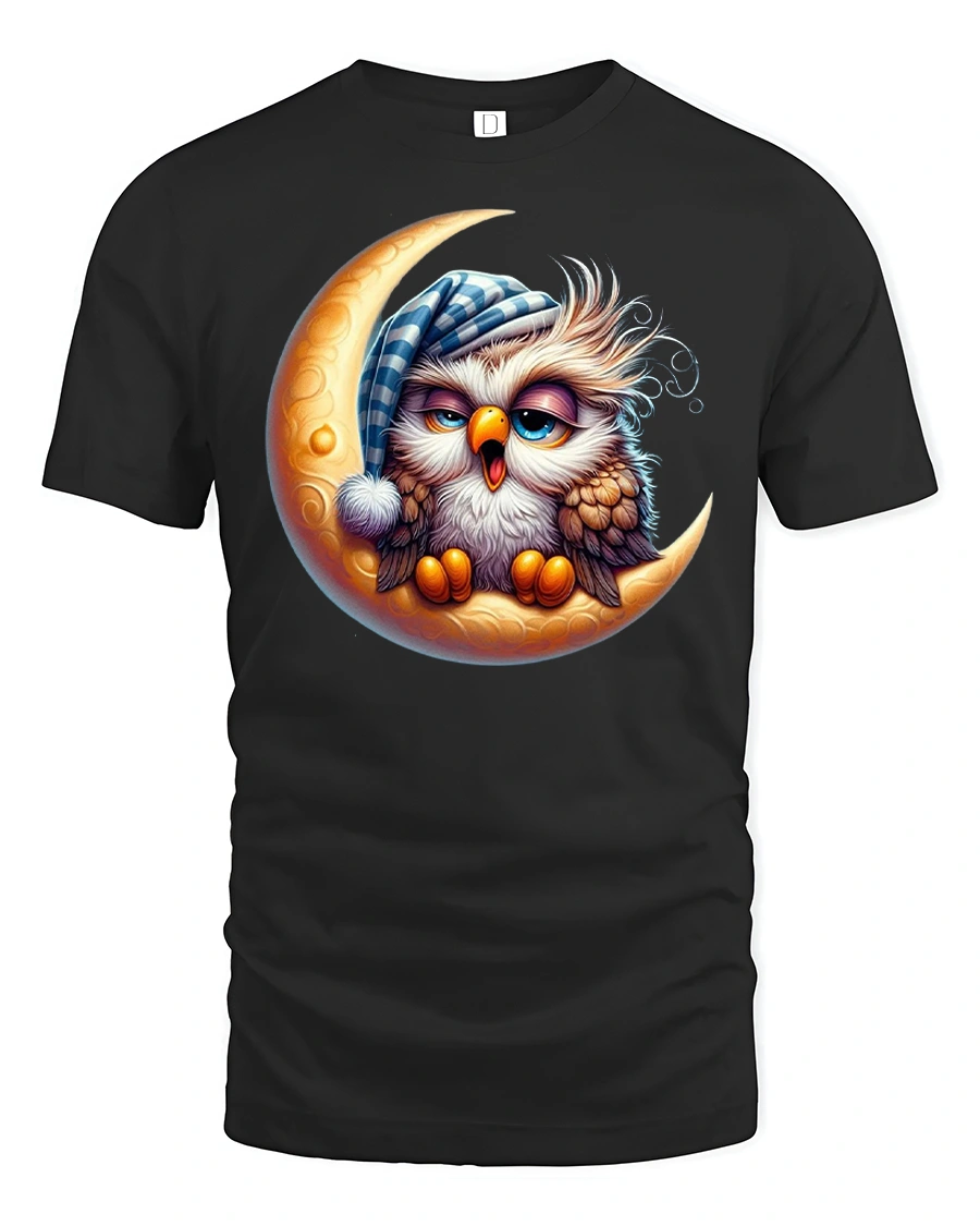 Sleepy Owl On Moon T Shirt Cute Night Art adds a touch of imagination and serenity to your wardrobe. This unique design transforms simple fashion into a whimsical expression of cozy nights, peaceful dreams, and playful creativity.