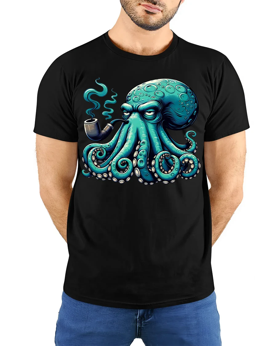 SKU: IMPD1011a24-1 Category: Funny Tags: bold graphic animal tee, cool octopus art tshirt, funny sea creature shirt, funny sea tshirt, humorous ocean shirt, marine animal tee, nautical graphic tee, ocean lover shirt, octopus t-shirt, pipe smoking shirt, quirky octopus design, smoking octopus tee, underwater creature shirt, unique marine graphic tee, vintage octopus art tee