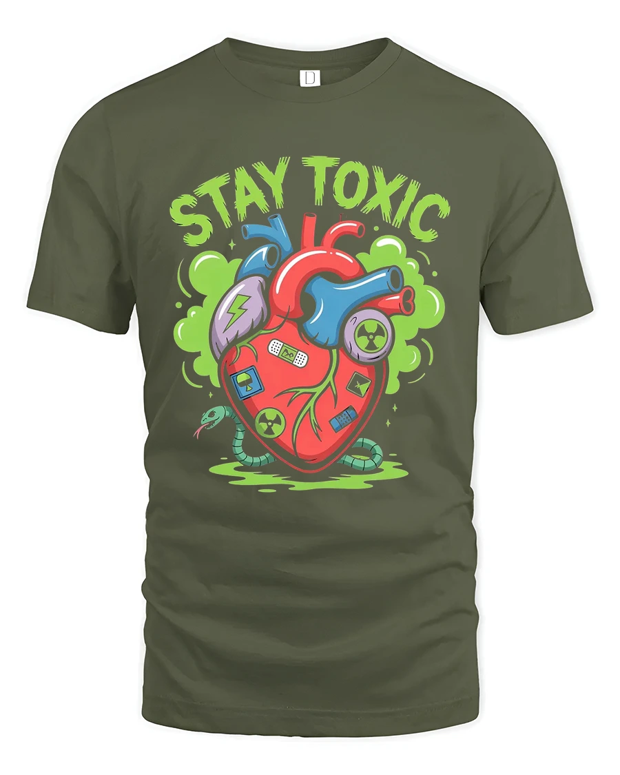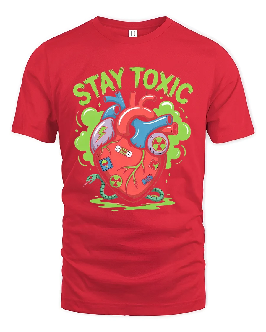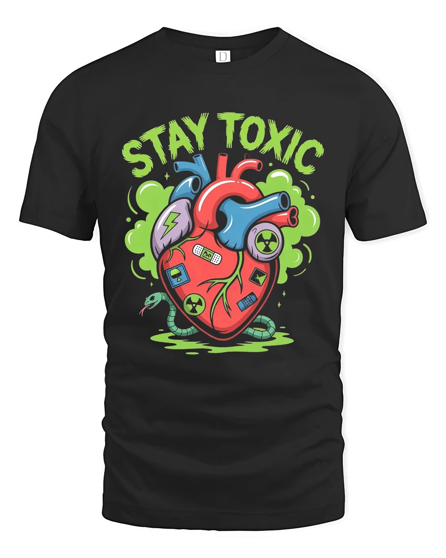 The Stay Toxic Mutant Heart Cartoon Street Art Graphic T Shirt is perfect for those who enjoy sarcastic humor and fearless self expression.