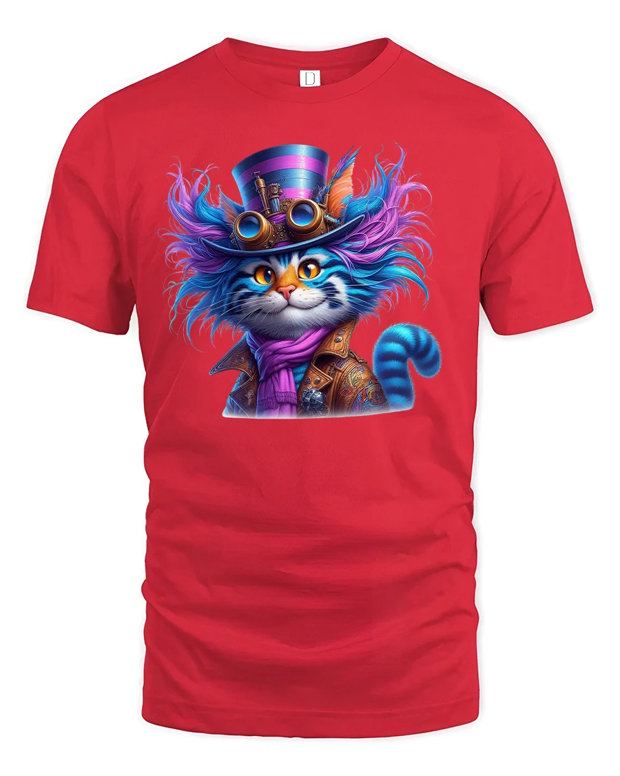 Steampunk Cat T-Shirt – Cool Mad Hatter Style Design brings together creativity, color, and attitude in one eye-catching piece.