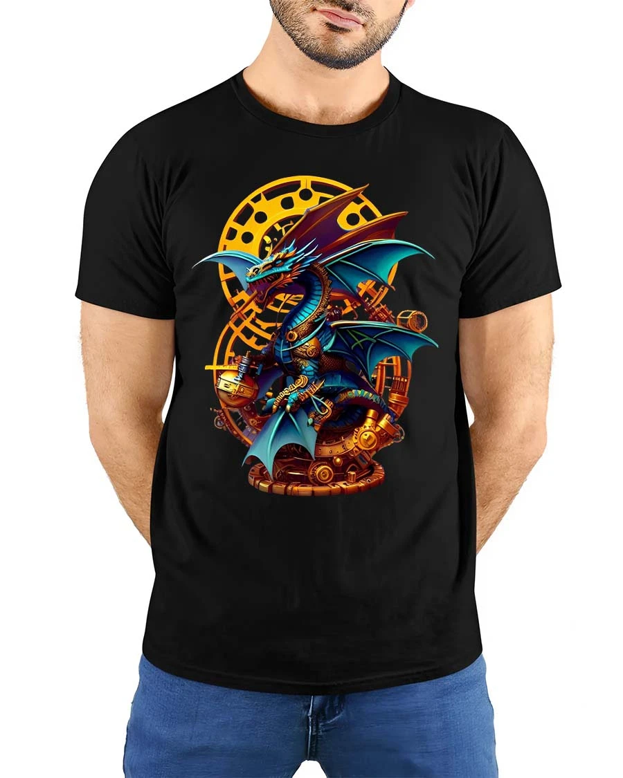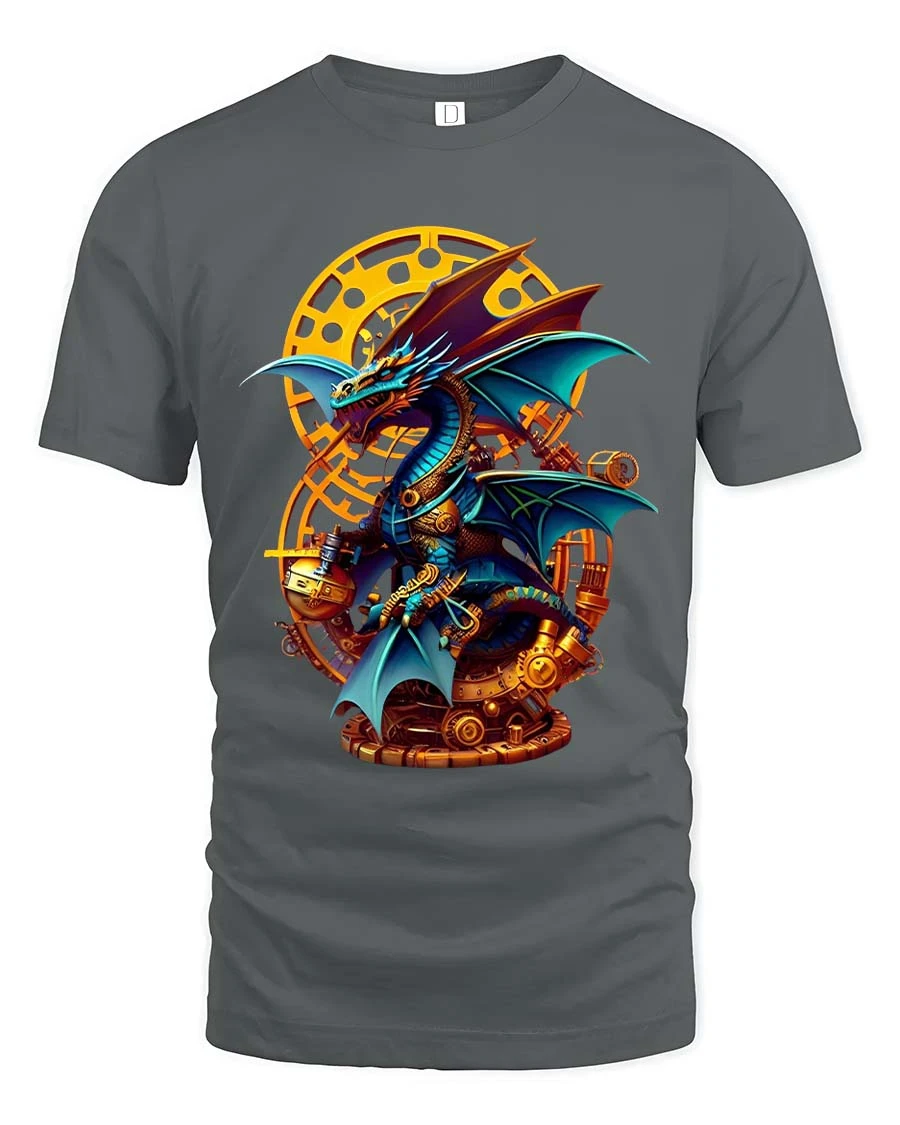 Steampunk Dragon T-Shirt Mechanical Fantasy Gear Art Tee features a powerful fusion of fantasy and industrial design in a bold and detailed illustration.