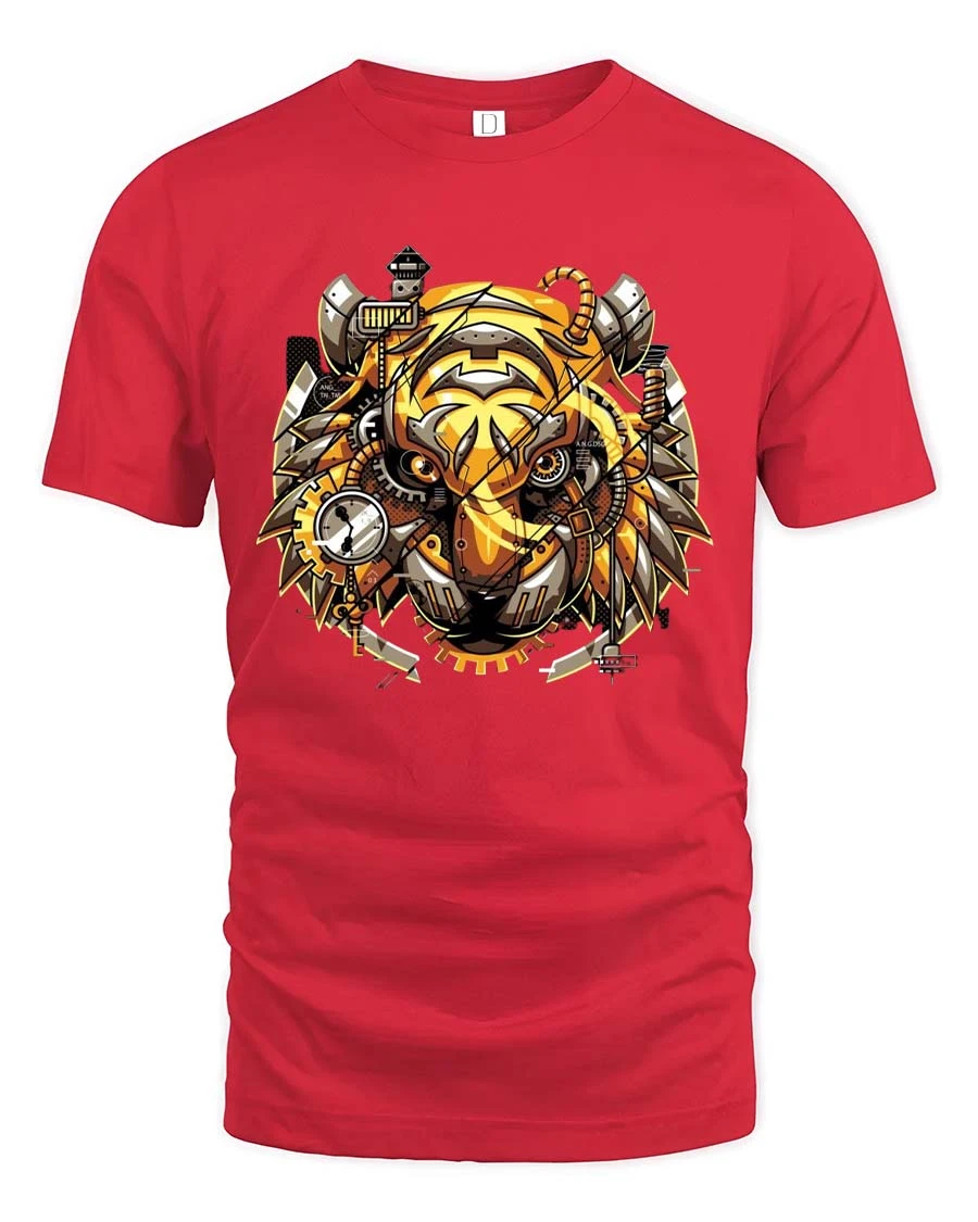 Steampunk Owl Graphic T Shirt Vintage Mechanical Bird Art - red t-shirt on white background