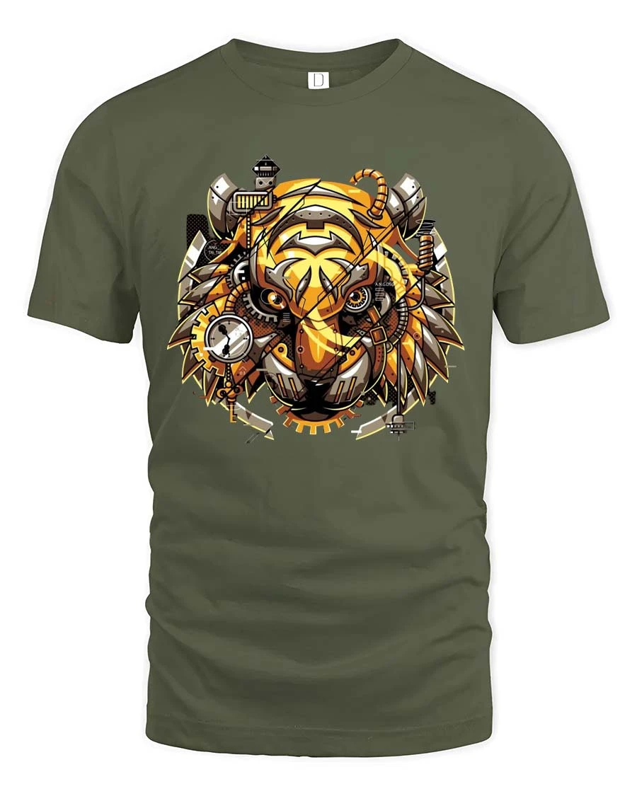 Steampunk Owl Graphic T Shirt Vintage Mechanical Bird Art - military green t-shirt on white background