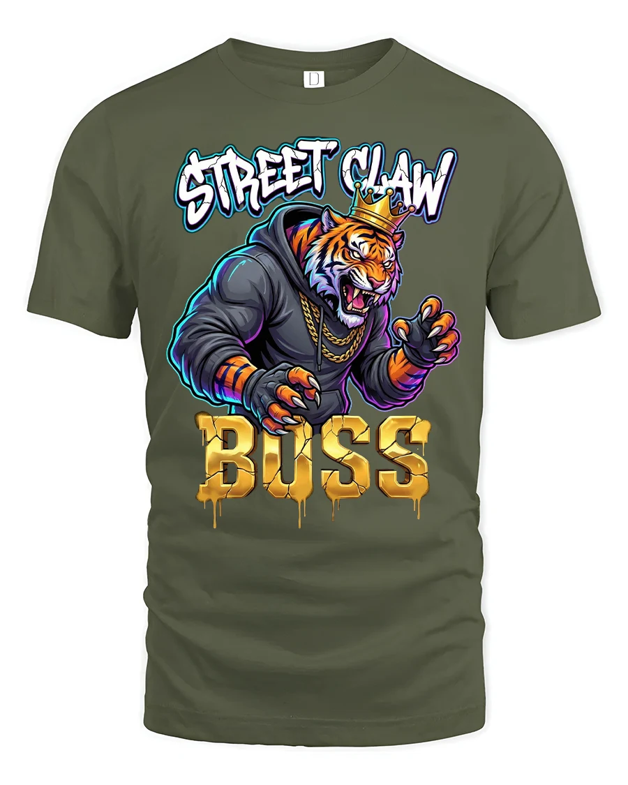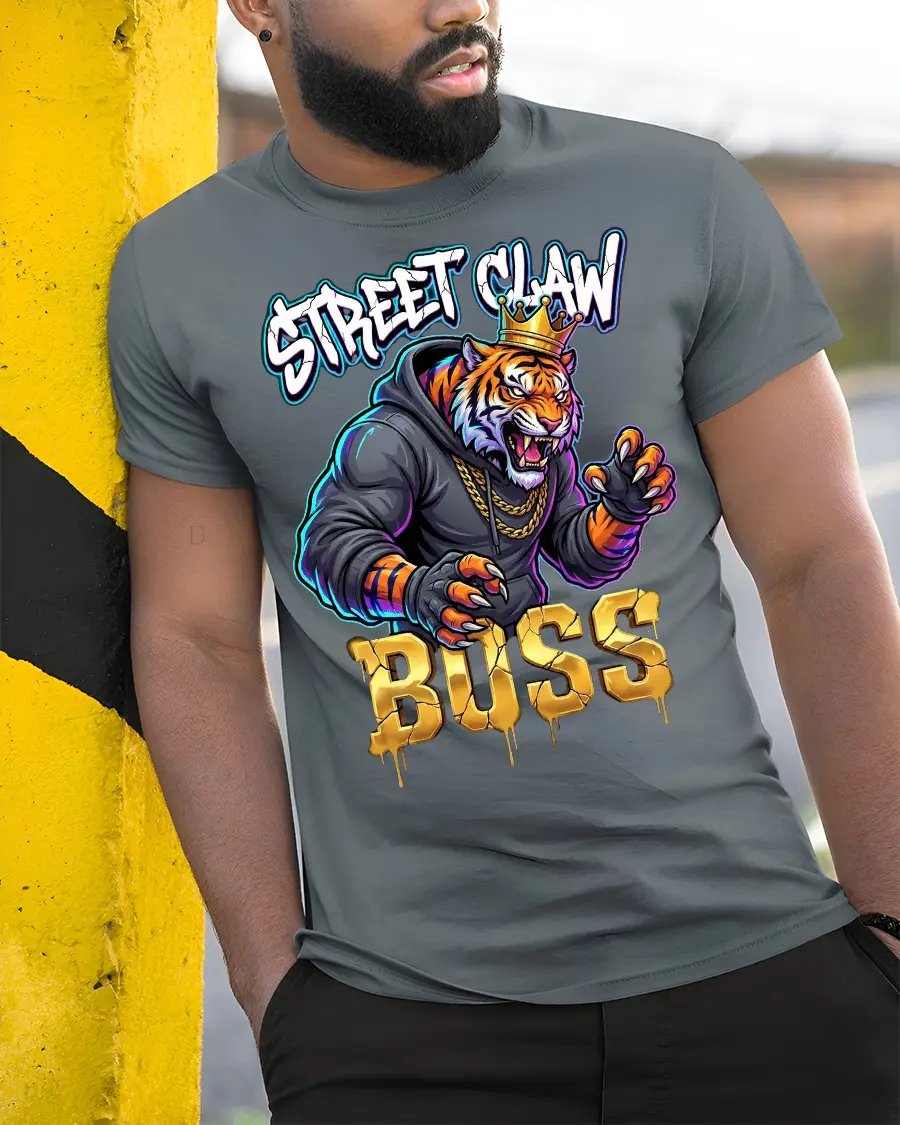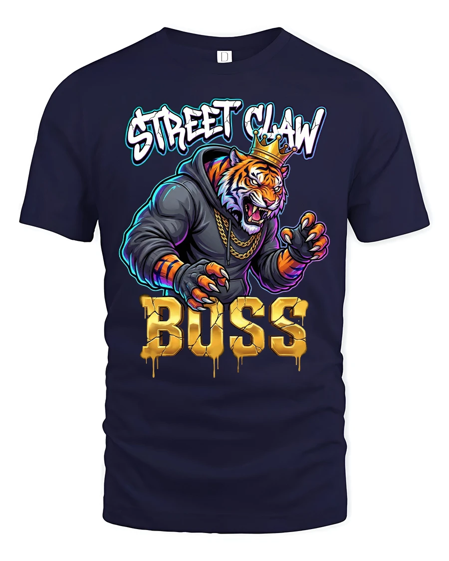 The Street Claw Boss Tiger Graphic T Shirt Urban Power Style brings fearless street dominance to life through a bold crowned tiger design.
