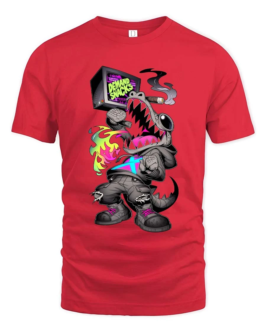 Street Shark Demand Snacks Graphic T Shirt Urban Vibe - red t-shirt on white background