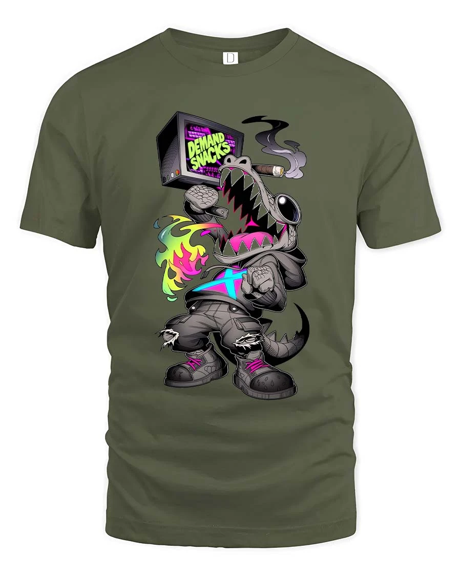 Street Shark Demand Snacks Graphic T Shirt Urban Vibe - military green t-shirt on white background