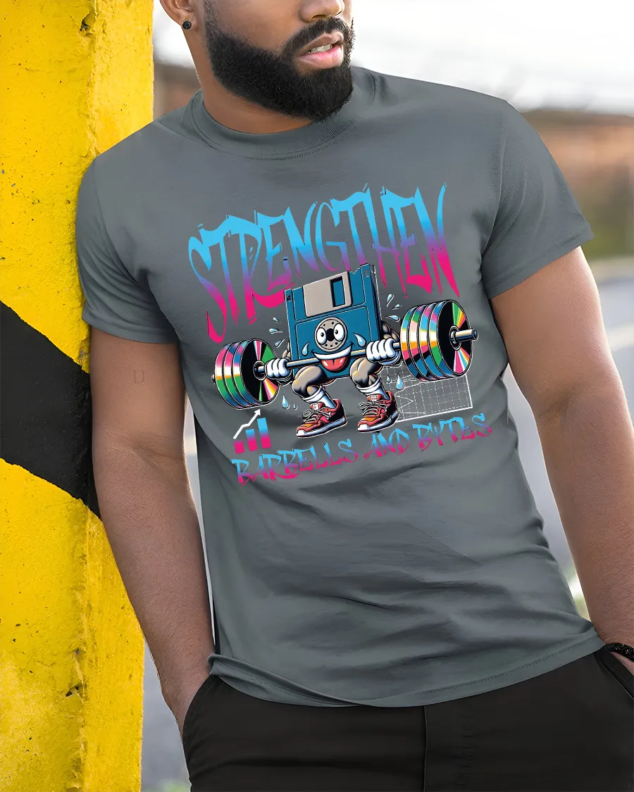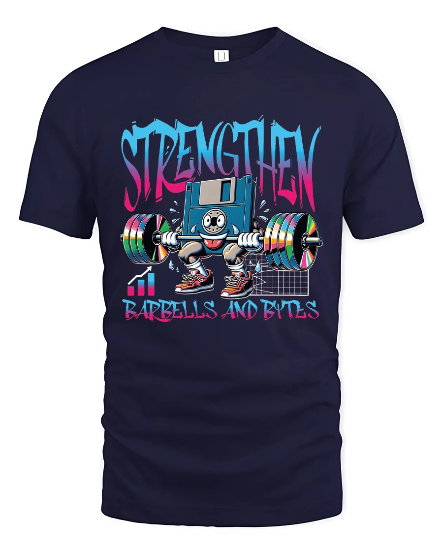 Strengthen Barbells And Bytes Funny Tech Gym T Shirt is perfect for anyone who loves programming, gaming, and lifting weights. It showcases dedication to both mind and muscle, turning your passion into a fun and expressive fashion statement.