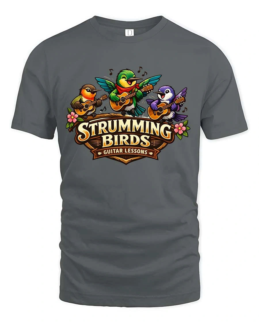 Strumming Birds Guitar Music Cute Cartoon Graphic Tshirt is a great choice for music lovers and fans of cute designs.