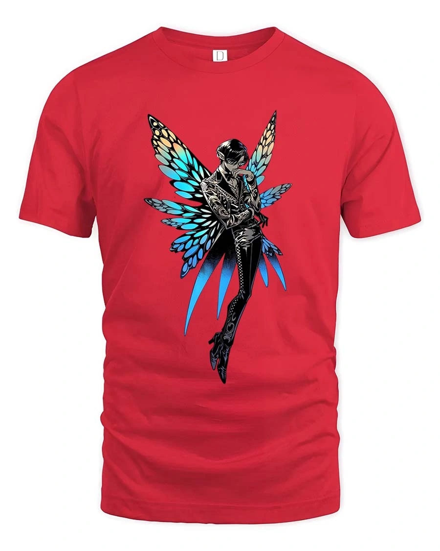 Stylish Fairy With Butterfly Wings T Shirt Dark Fantasy Graphic Tee - red t-shirt on white background