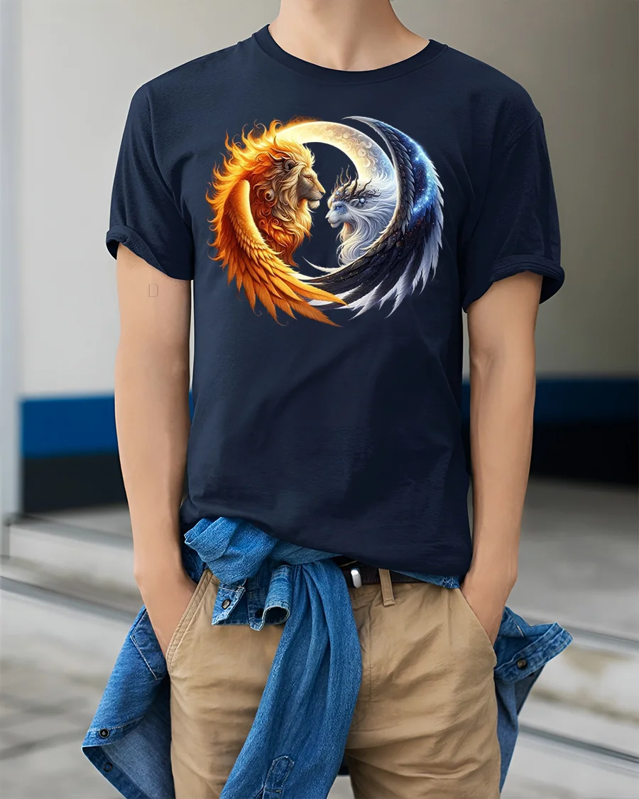 Sun and Moon Lion Yin Yang Balance Art T-Shirt