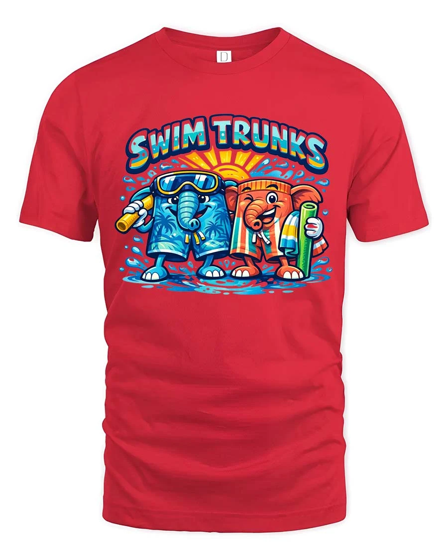 Swim Trunks Funny Elephant Summer Beach Graphic T Shirt - red t-shirt on white background