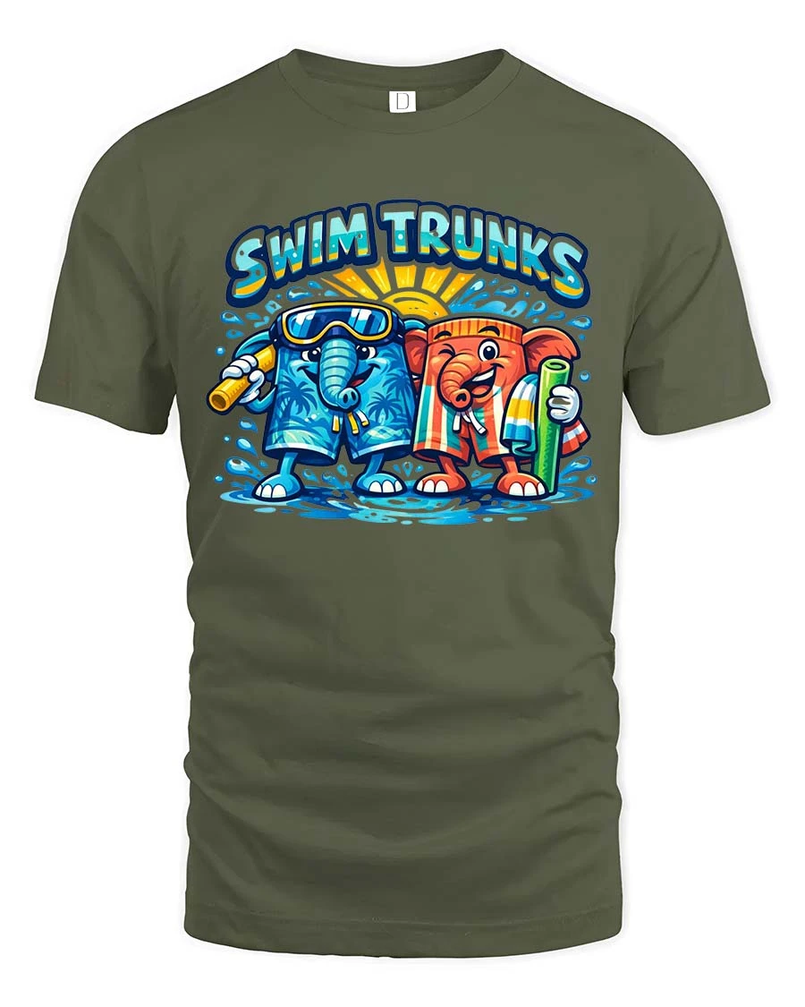 Swim Trunks Funny Elephant Summer Beach Graphic T Shirt - military green t-shirt on white background