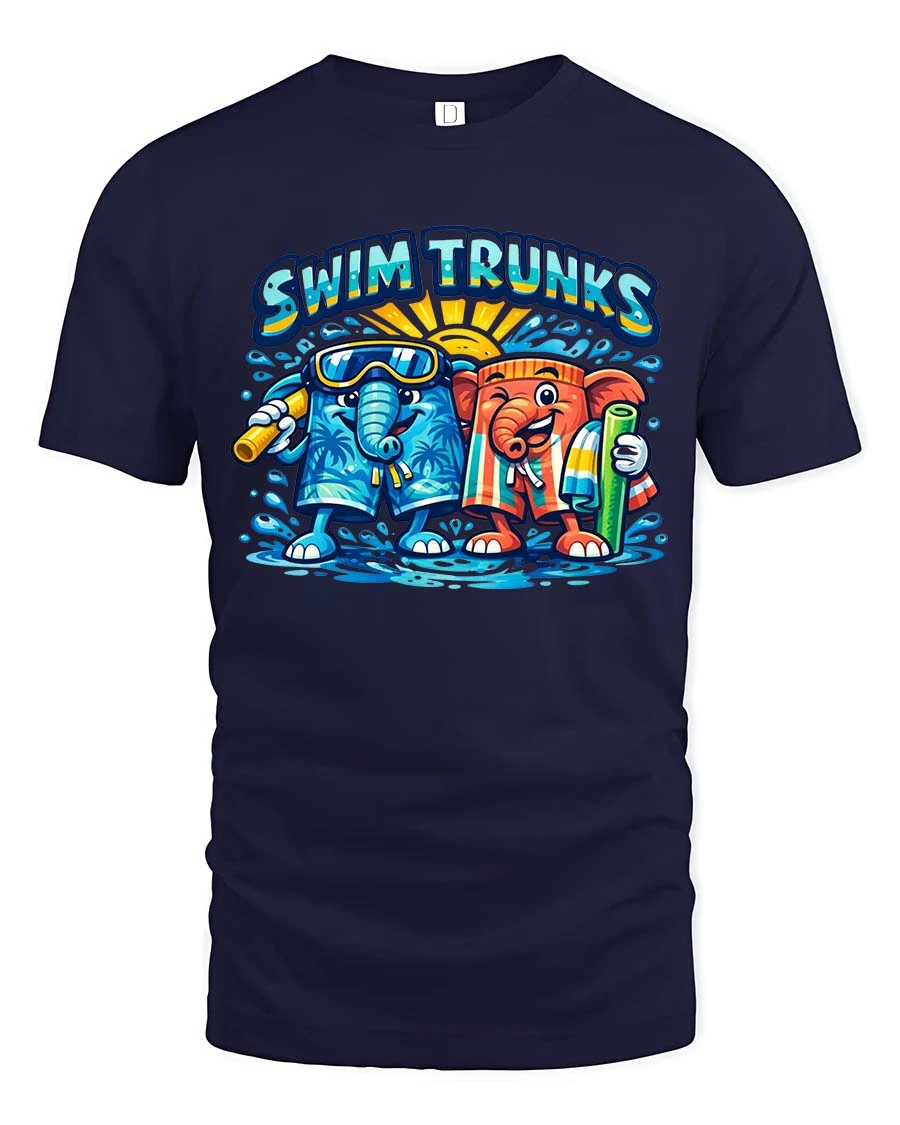Swim Trunks Funny Elephant Summer Beach Graphic T Shirt - navy t-shirt on white background