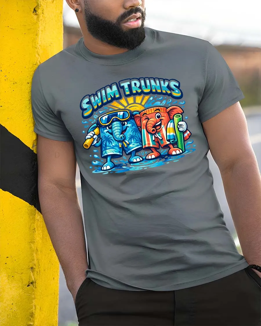 Swim Trunks Funny Elephant Summer Beach Graphic T Shirt brings a fun and cheerful vibe inspired by sunny beach days.