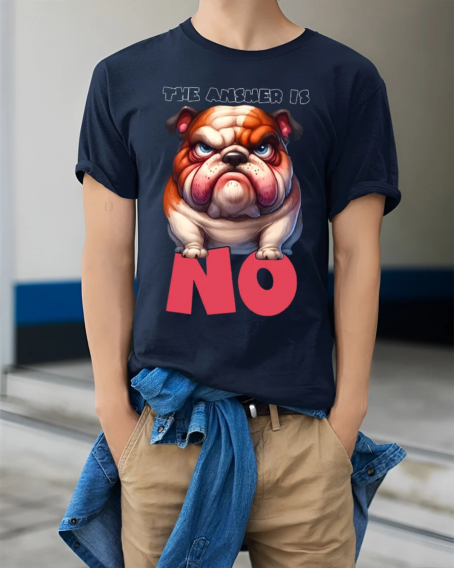 The Answer Is No Funny Grumpy Bulldog Attitude Graphic Tee delivers instant humor with a bold expressive design.