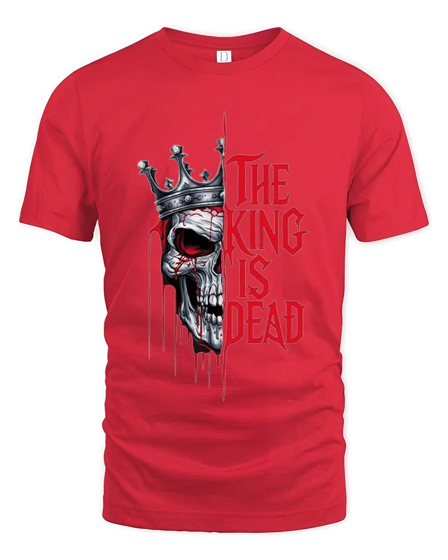 The King Is Dead Skull Crown Graphic T Shirt Dark Gothic - red t-shirt on white background
