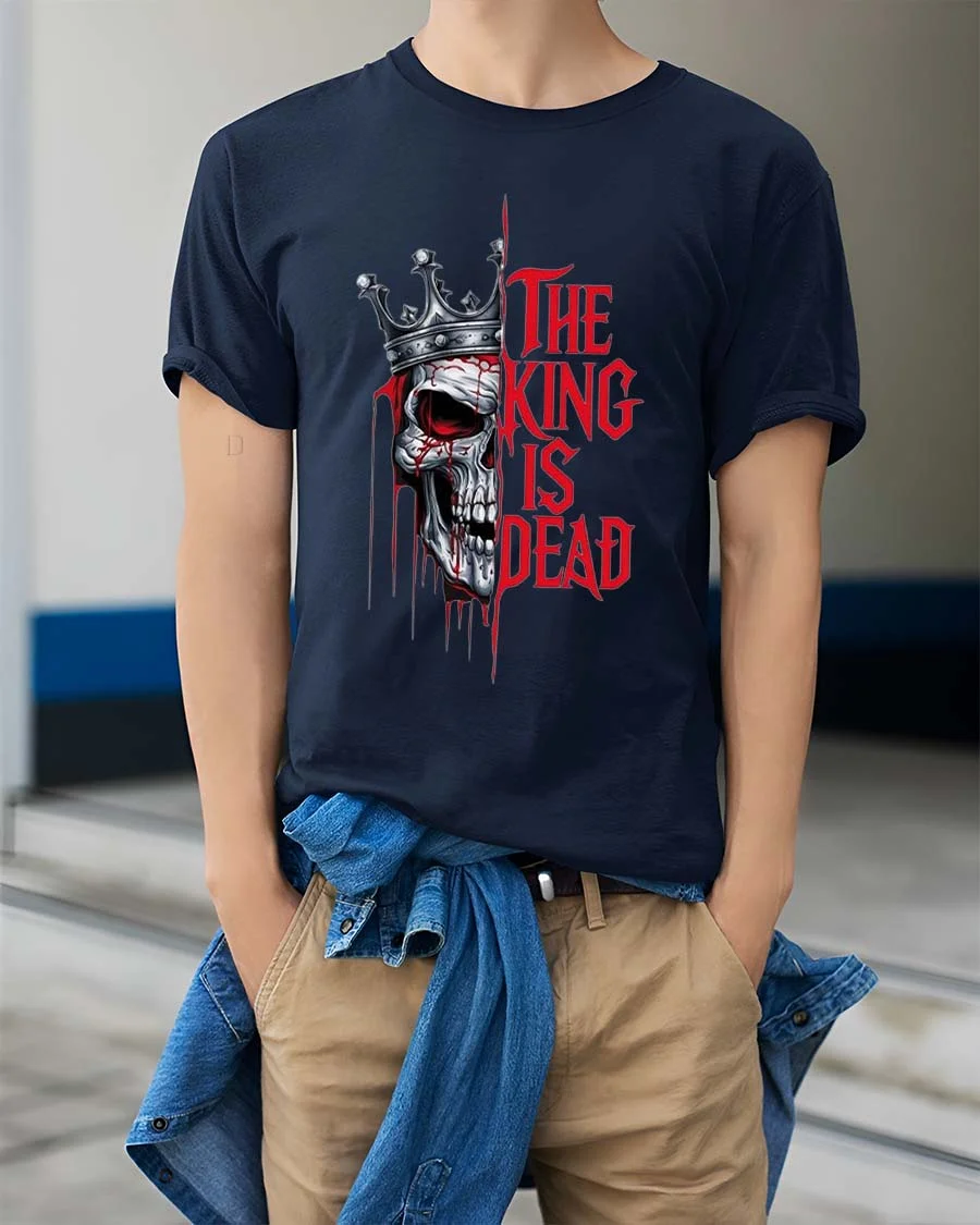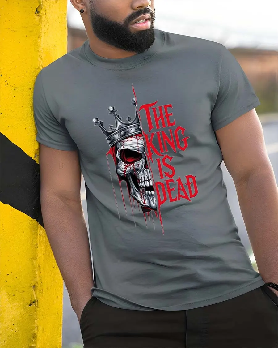 Make a bold impression with this the king is dead skull crown graphic t shirt.