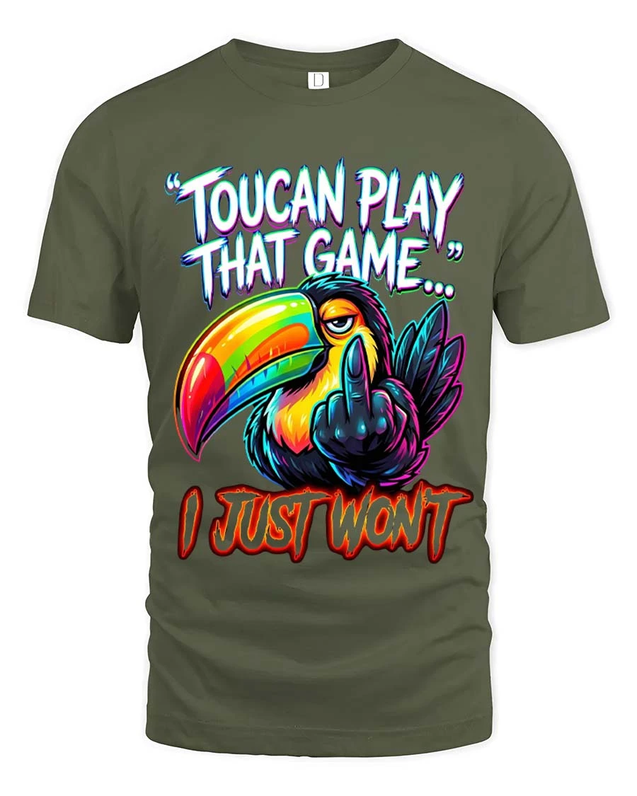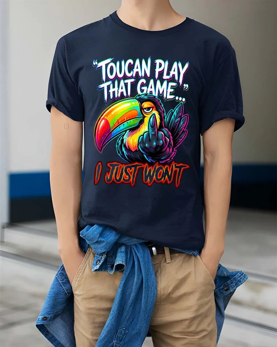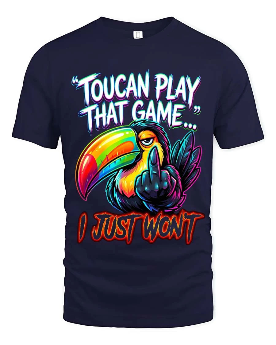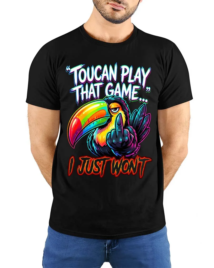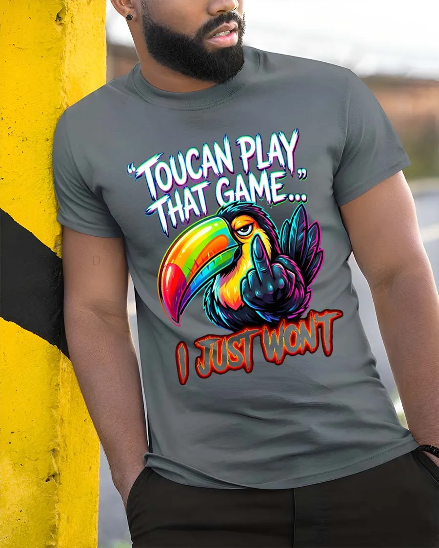 Toucan Play That Game Funny Bold Attitude Graphic T Shirt delivers a sharp sense of humor with a vibrant and eye catching design.