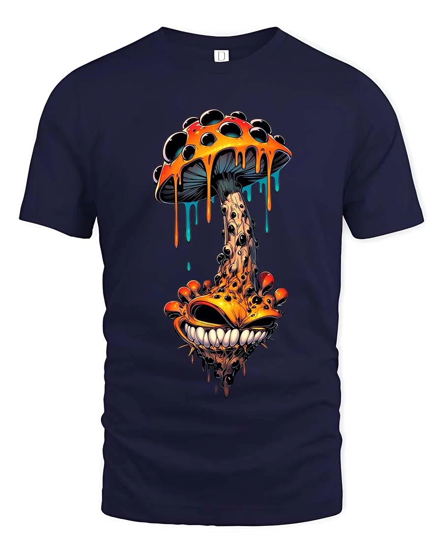 Trippy Melting Mushroom Monster T Shirt Psychedelic Art Tee - navy t-shirt on white background