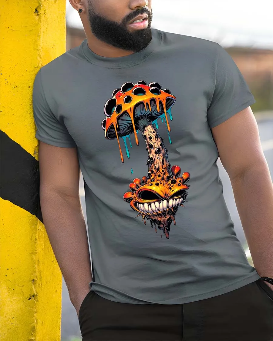 Trippy Melting Mushroom Monster T Shirt Psychedelic Art Tee - gray t-shirt on white background