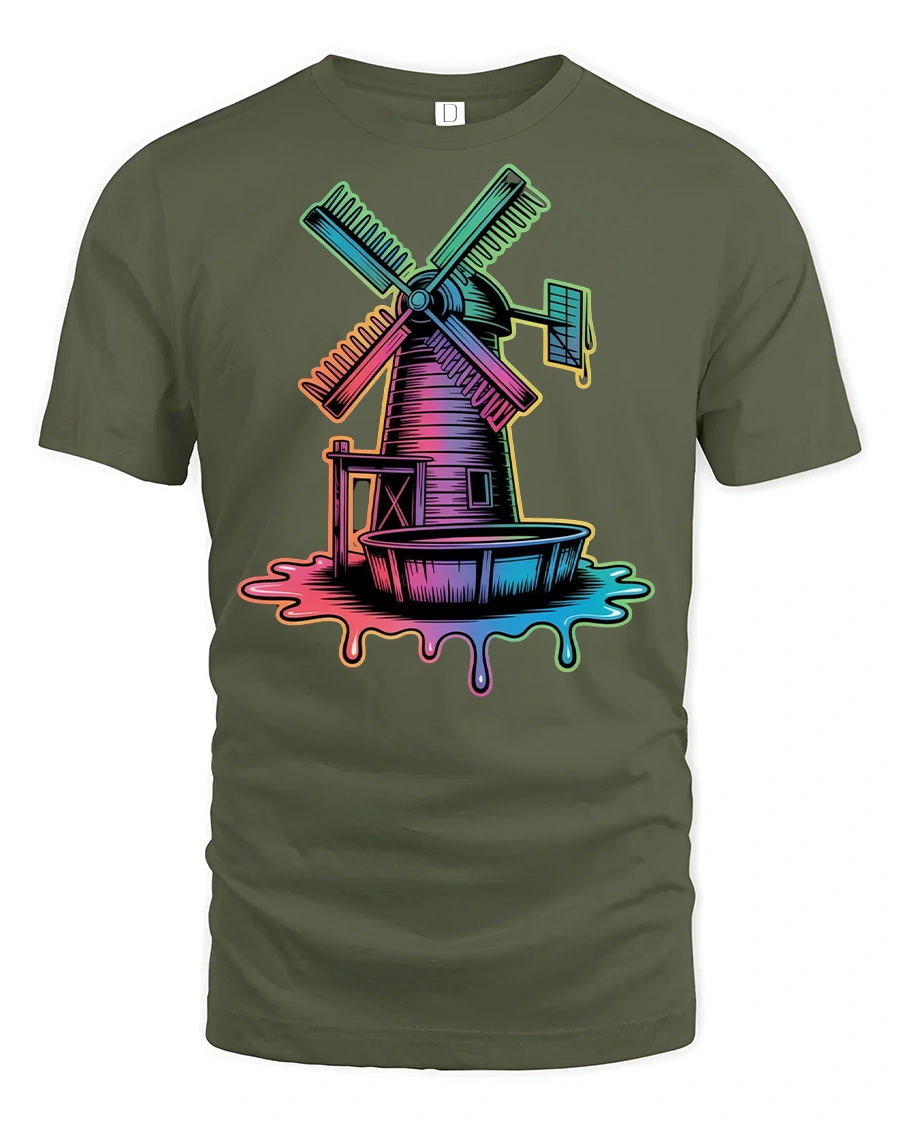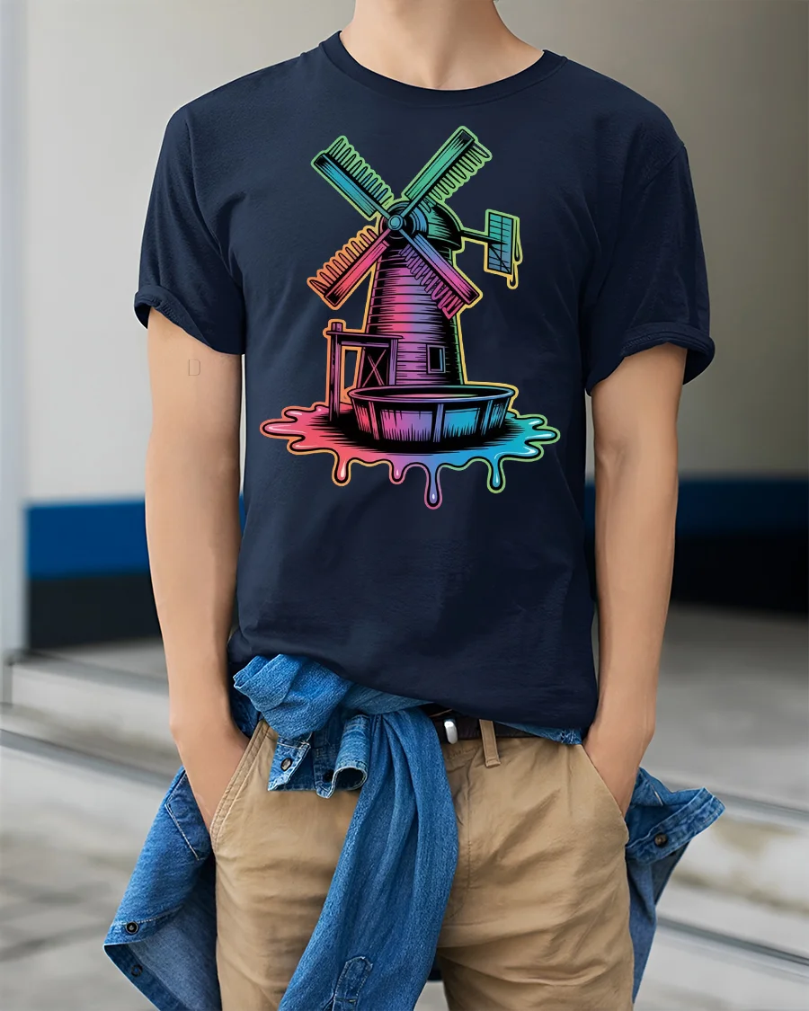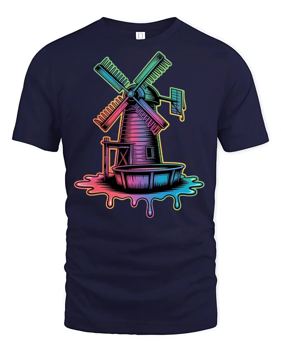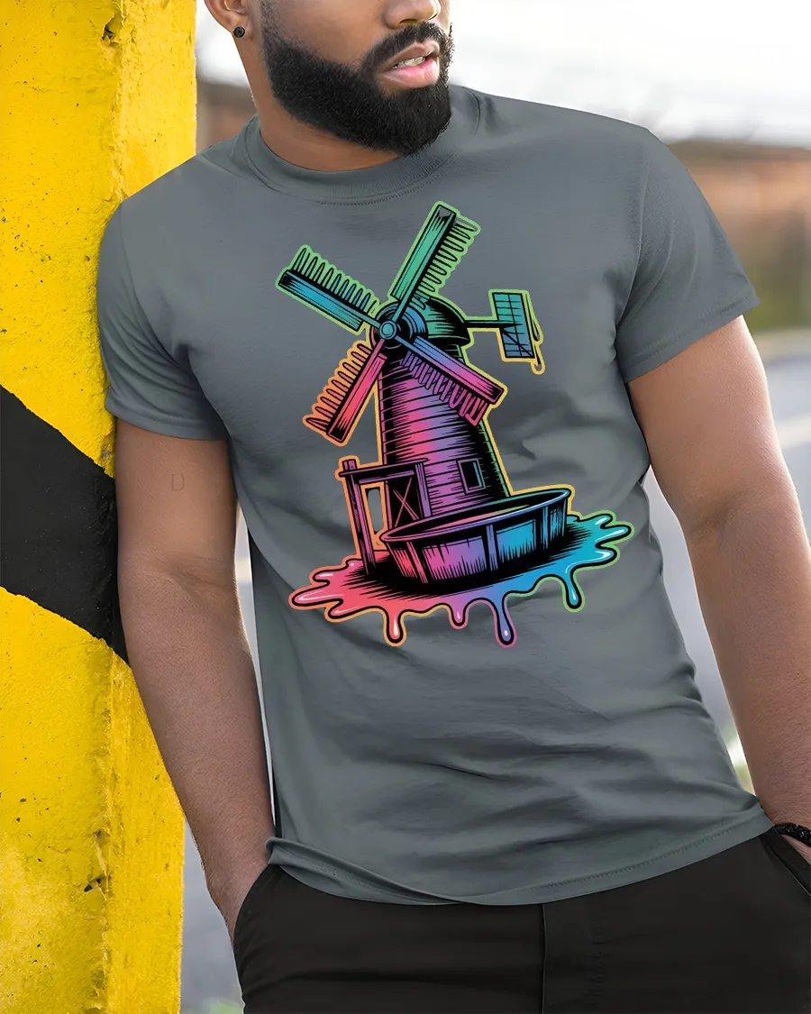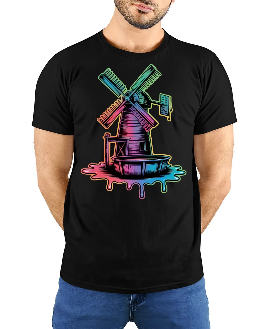 Trippy Neon Windmill T-Shirt Retro Vaporwave Style blends artistic creativity with vibrant streetwear energy.