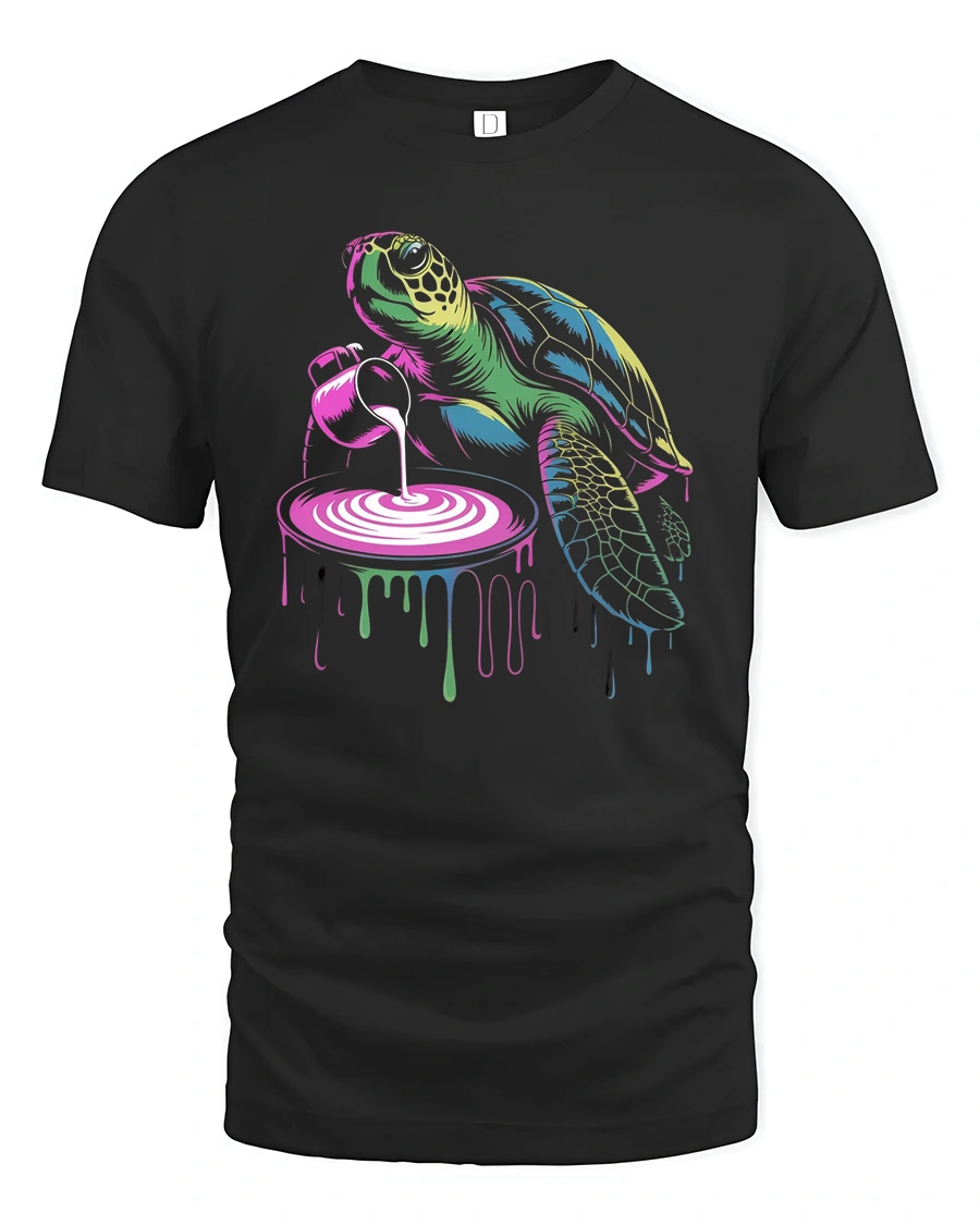 Featuring a turtle pouring glowing paint that drips with vibrant color, this tee captures the perfect blend of chill and artistic energy.