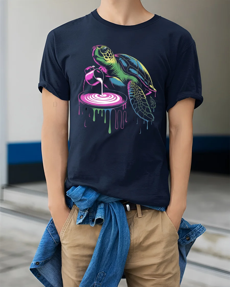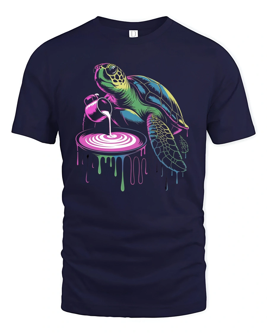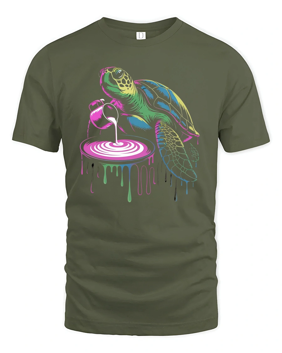 Add the Turtle Paint Pour T-Shirt to your wardrobe and express your love for creativity, humor, and color.