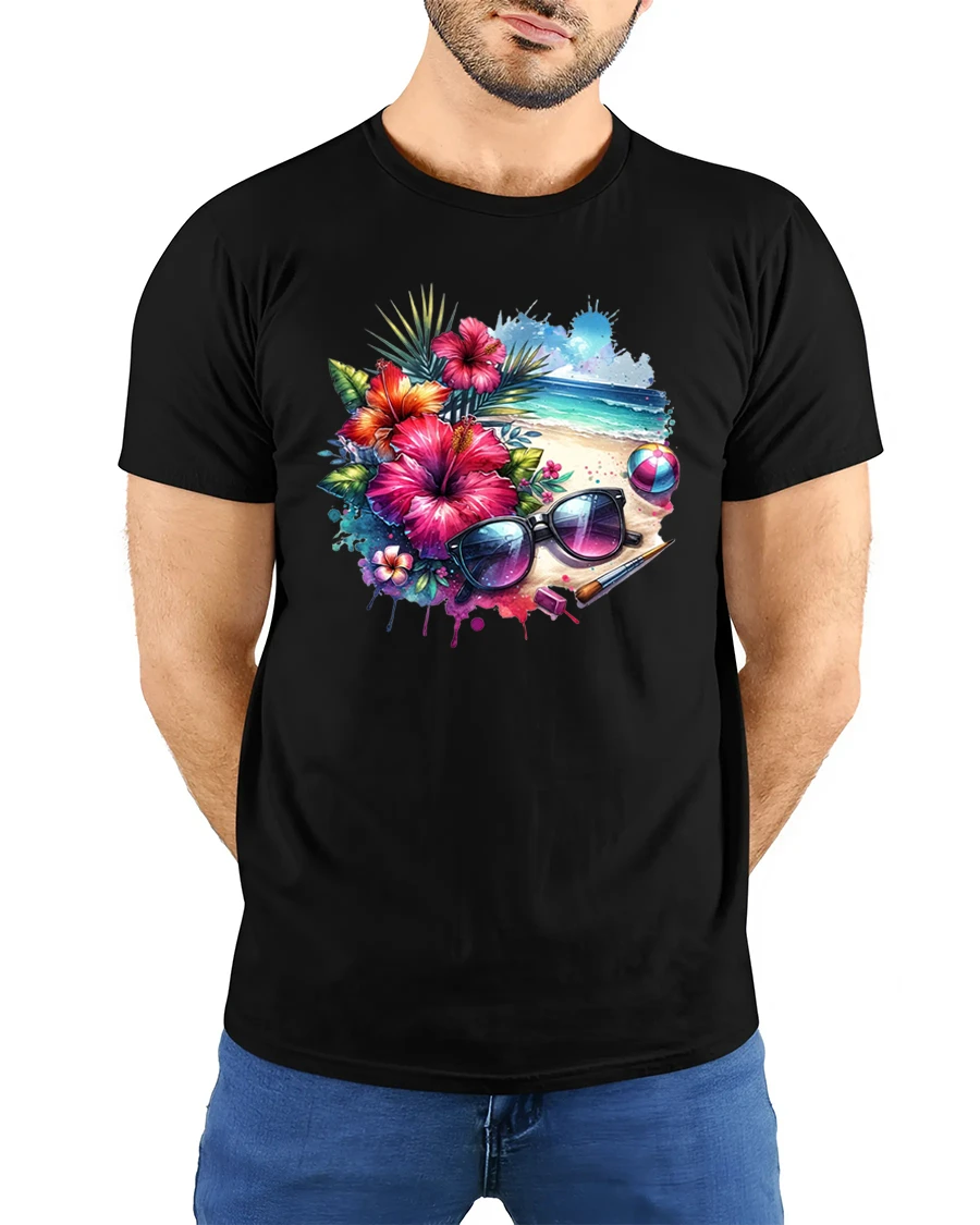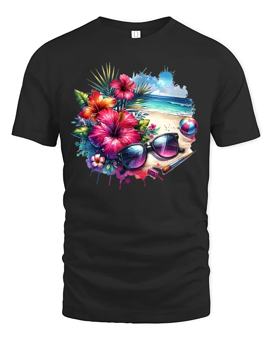 Tropical Beach Vibes Floral Art Summer Vacation Tee brings the warmth of paradise right into your everyday style. Featuring a vibrant mix of hibiscus flowers, ocean waves, palm leaves, and retro sunglasses, this tee captures the lively spirit of a perfect beach getaway. Designed for comfort and style, it’s an ideal choice for anyone who loves bright colors, tropical themes, and the relaxing charm of seaside life.