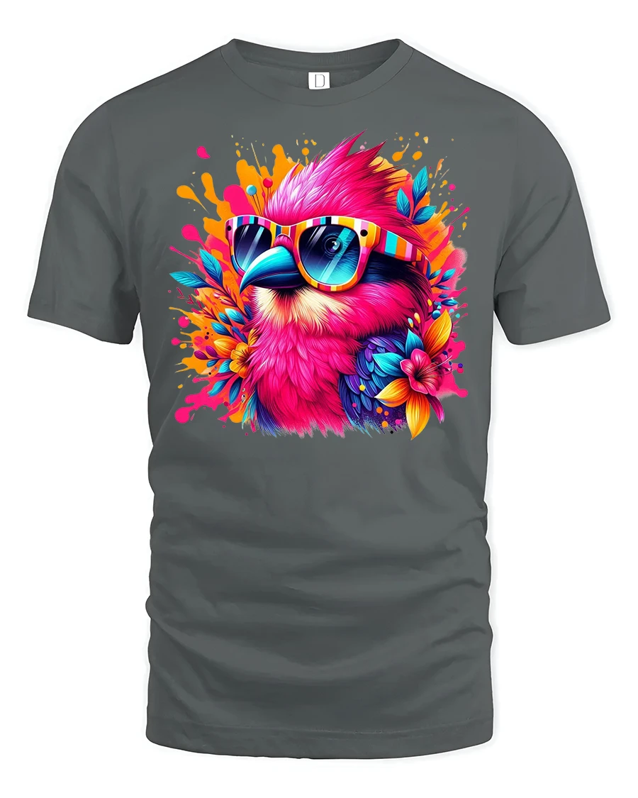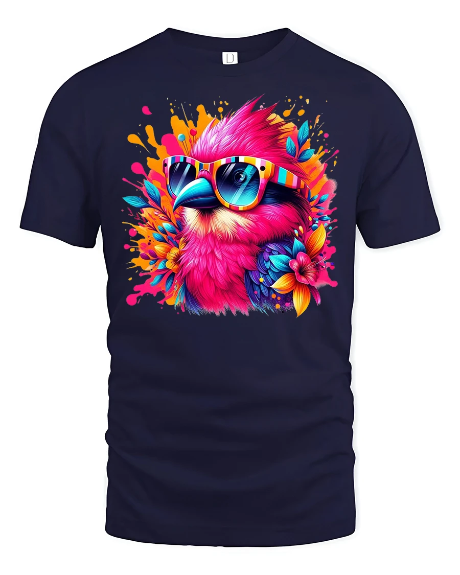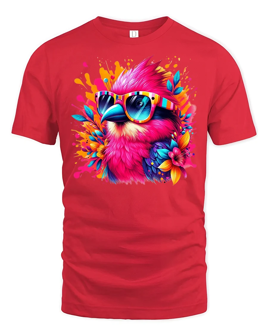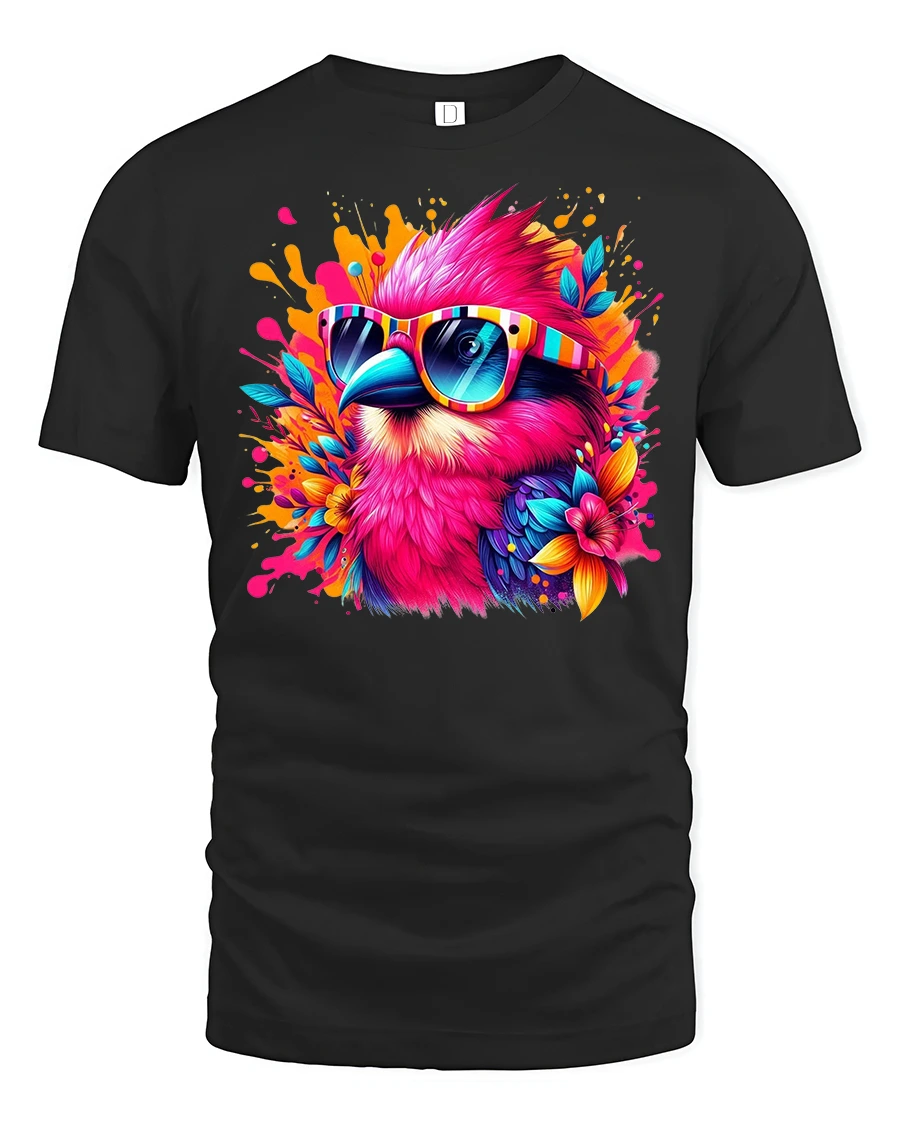Bring a burst of color and personality to your wardrobe with our Tropical Vibe Bird Tee with Colorful Sunglasses. Featuring a vibrant, neon-hued tropical bird rocking bold striped shades, this t-shirt is the perfect mix of summer energy and street style. The detailed splash art design pops against the fabric, making it a standout choice for music festivals, beach parties, or casual everyday wear.