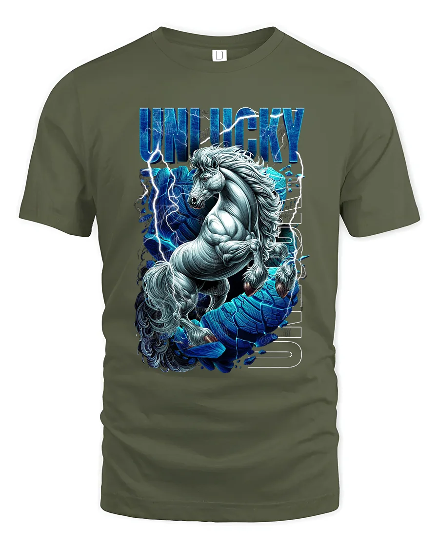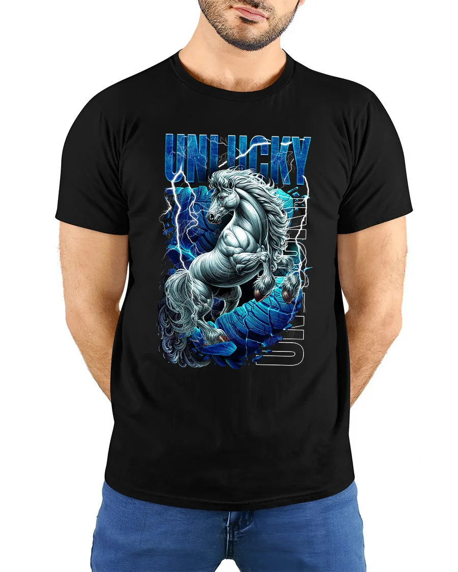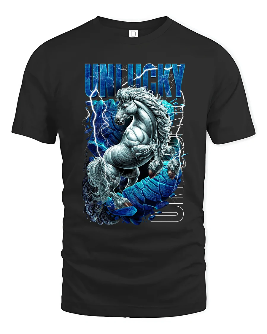 The Unlucky Lightning Unicorn Graphic Tee offers a smooth comfortable feel designed for everyday wear while keeping a bold visual statement.