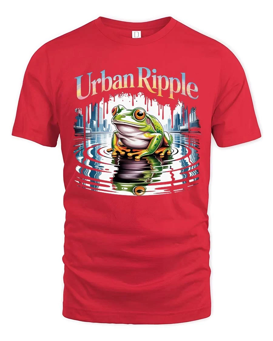 Urban Ripple Frog Graphic T-Shirt City Water Reflection Tee - red t-shirt on white background