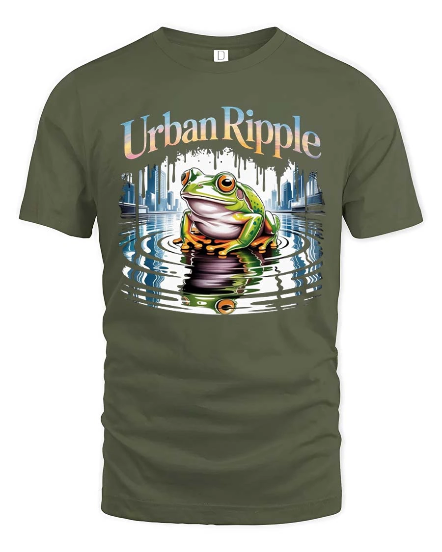 Urban Ripple Frog Graphic T-Shirt City Water Reflection Tee - military green t-shirt on white background