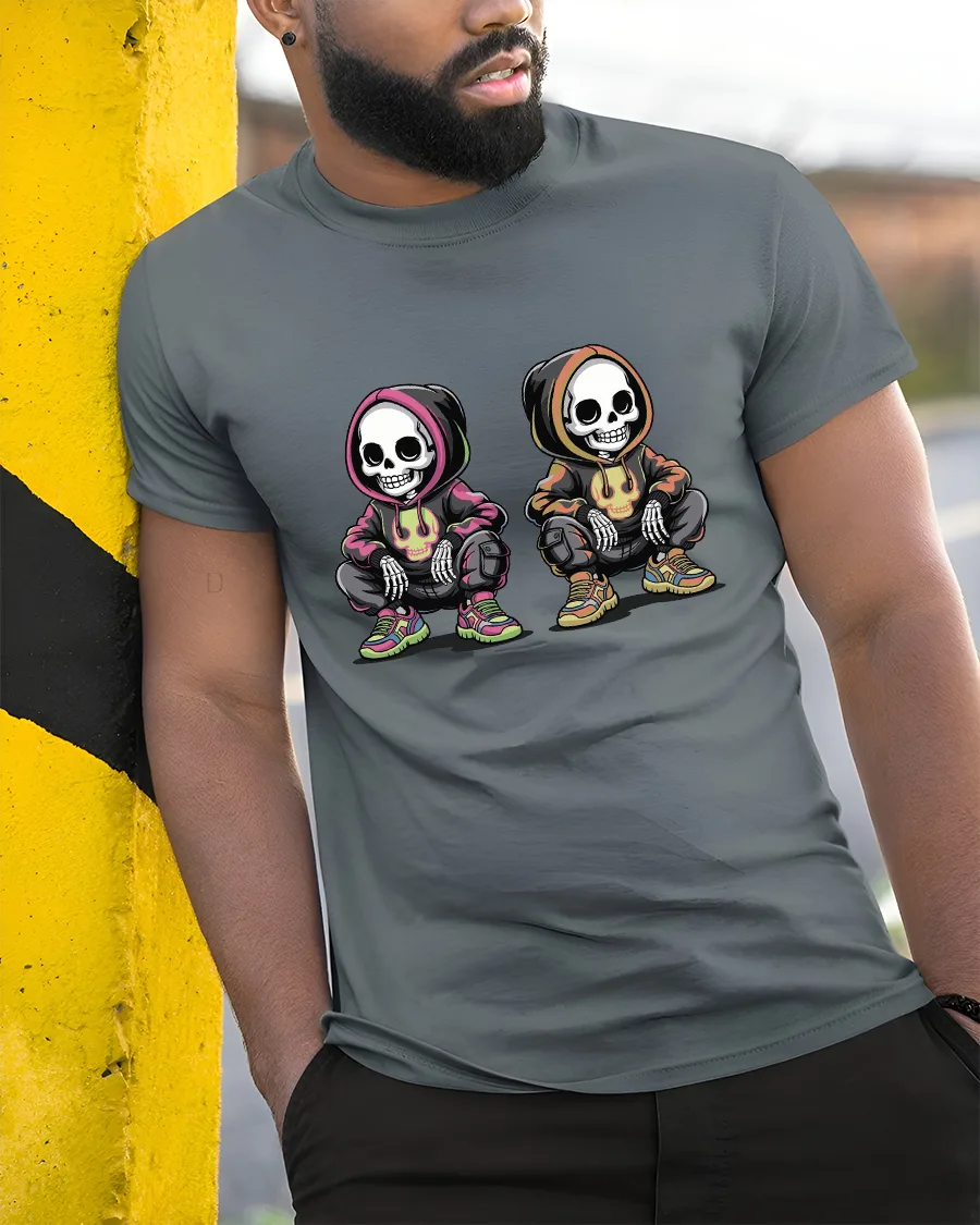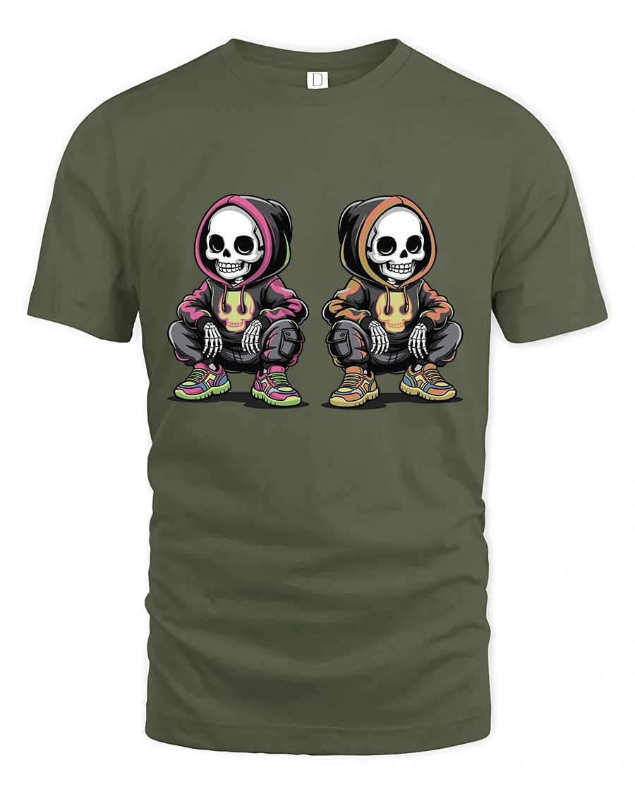 The Urban Skeleton Duo Streetwear Tee with Cool Hoodie Art also makes a great gift for anyone into skeleton art, streetwear, or bold graphic tees. Add this eye-catching piece to your collection and enjoy a fun mix of color, character, and cool urban energy in one standout design.