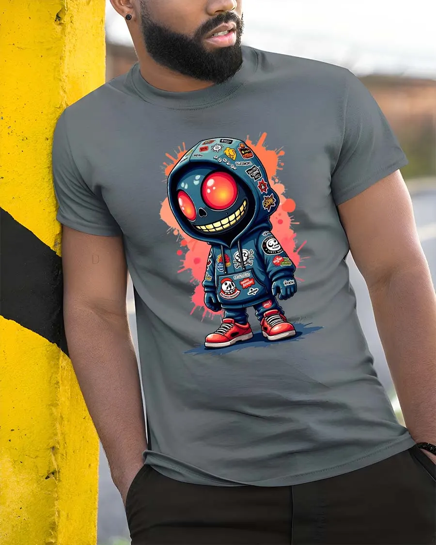 Stand out with this unique graphic piece that blends street art and character style seamlessly.