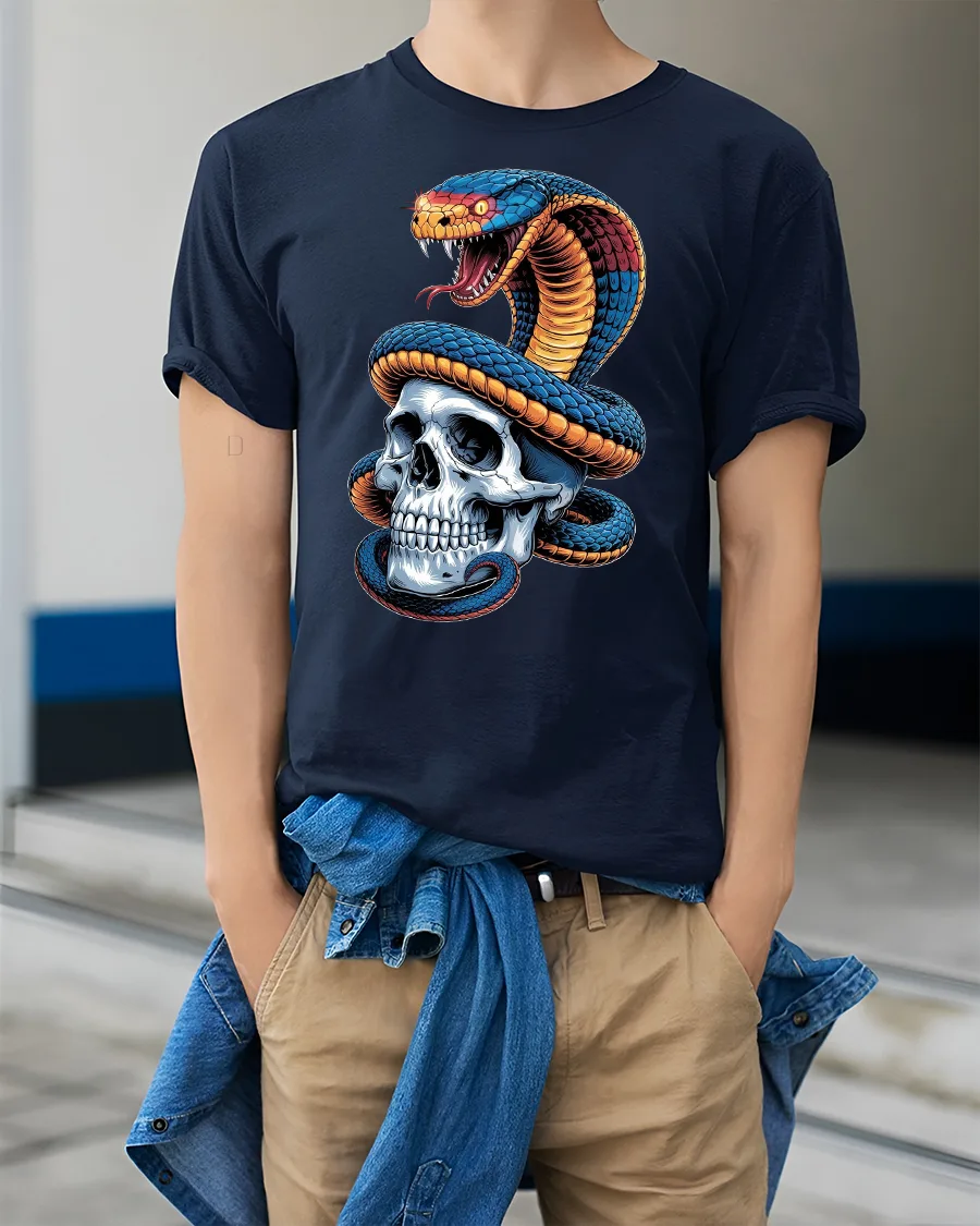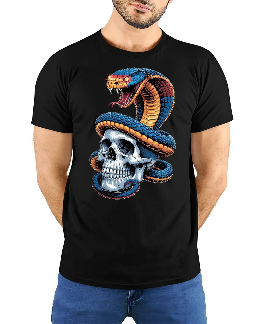 The Venomous Snake and Skull Graphic Tee for Men is a great choice for fans of gothic fashion, tattoo art, and bold statement apparel. Pair it with jeans, leather boots, or a jacket to complete your rebellious streetwear vibe. Make this fierce snake and skull tee your next go-to graphic shirt.